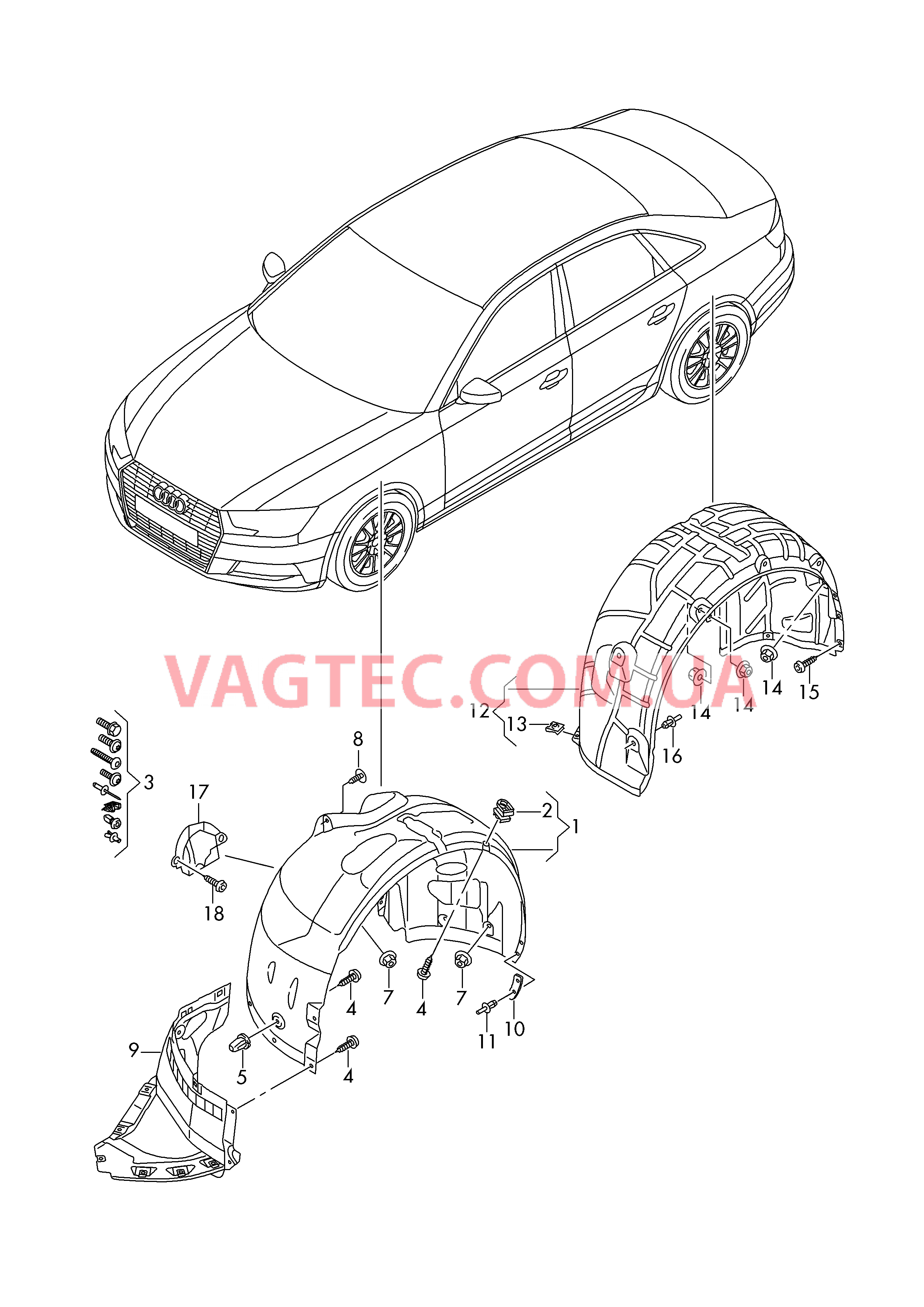 | 3 | 8W6098629 | 1 к-т элементов крепления дляподкрылка колёсной арки | перед. и задн. | 1 | |