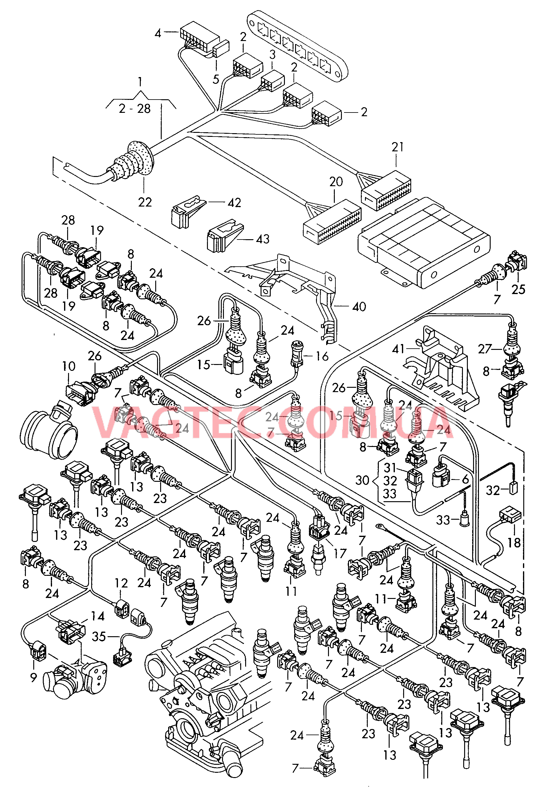 | 28 | 4B0906102 | Насадка/наконечник Cоединение Лямбда-зонд Цепь высок. напряж. TSZ | X 4 2 | ||