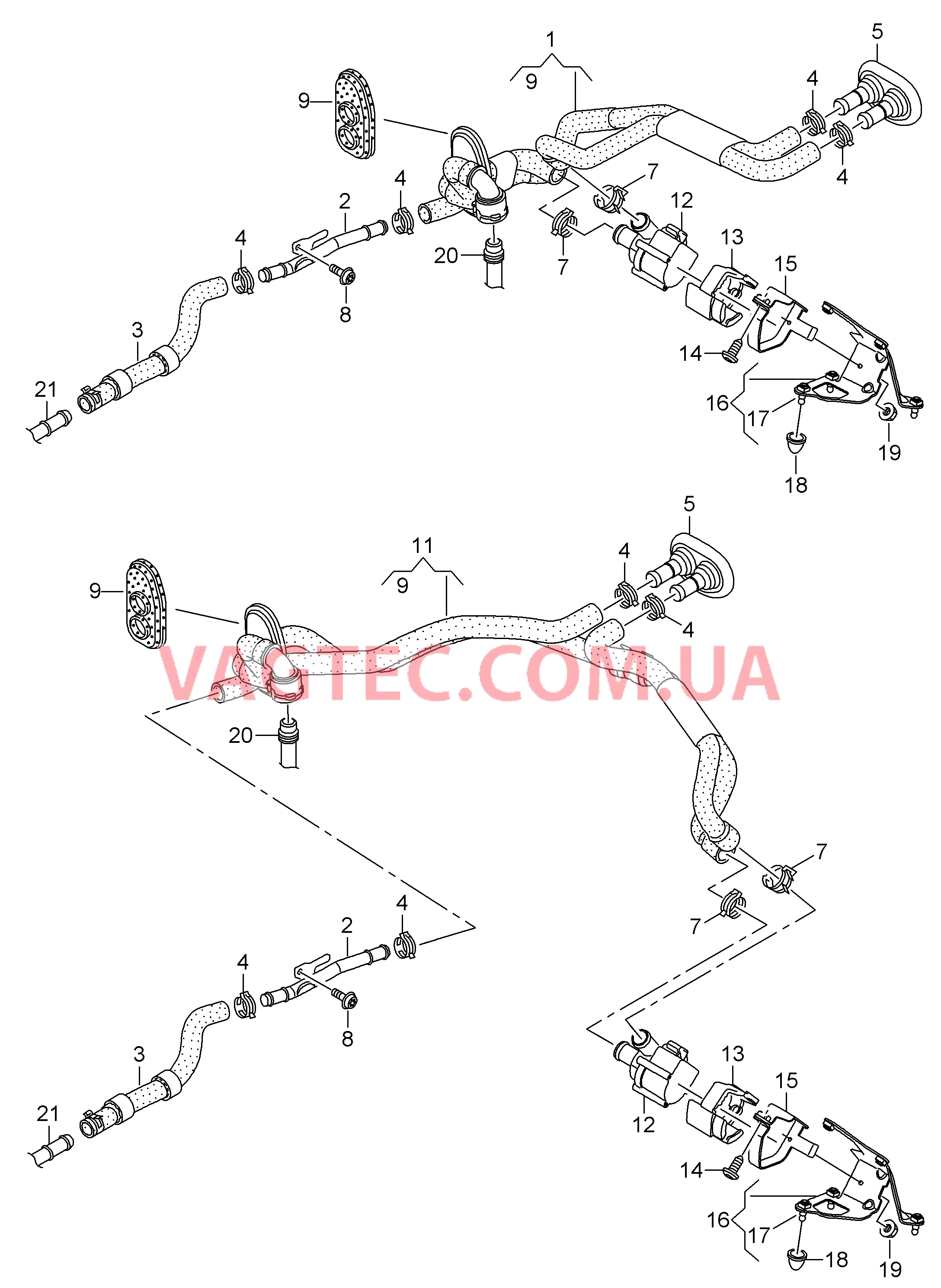 | 9 | 8K0819345F | Двойная втулка Шланг системы охлаждения | 1 | ||
