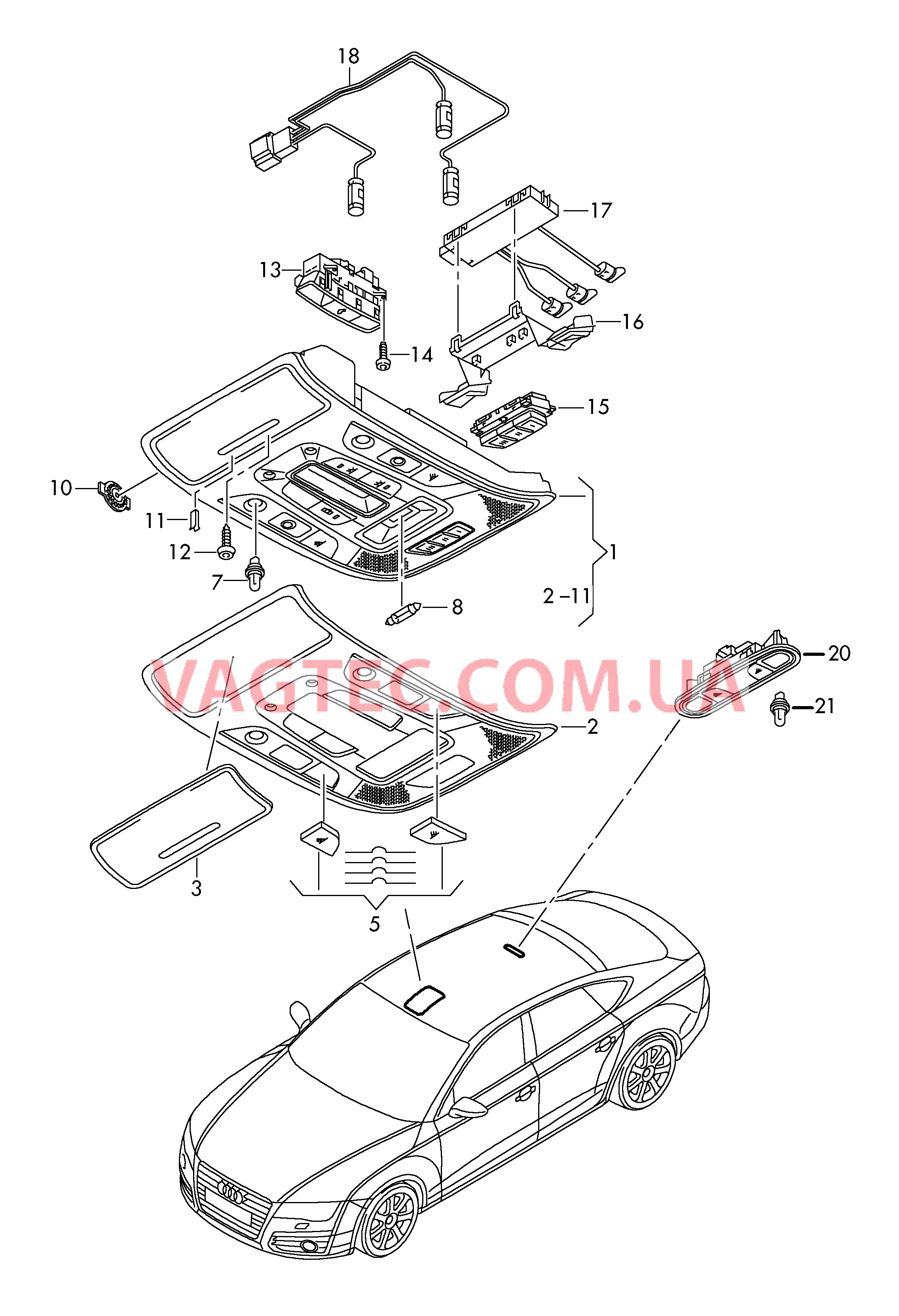| 20 | 4G0947111A | Плафон | 1 | PR-IW0+6NA, 6NQ | |