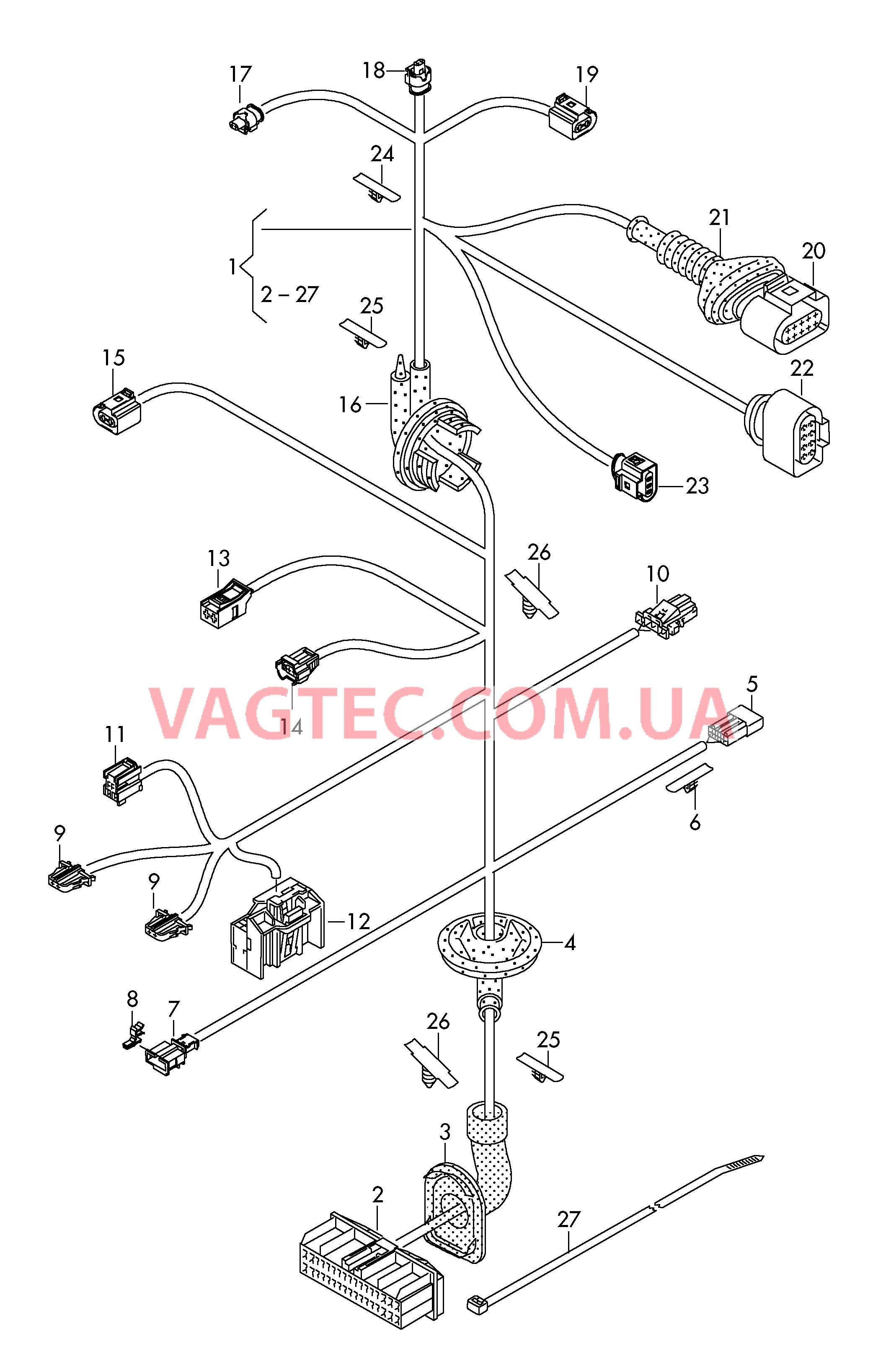 | 2 | 8K0972702 | Корпус плоского разъёма сфиксатором контактов Штуцер Жгут проводов для салона | 27-штекерный | 1 | |