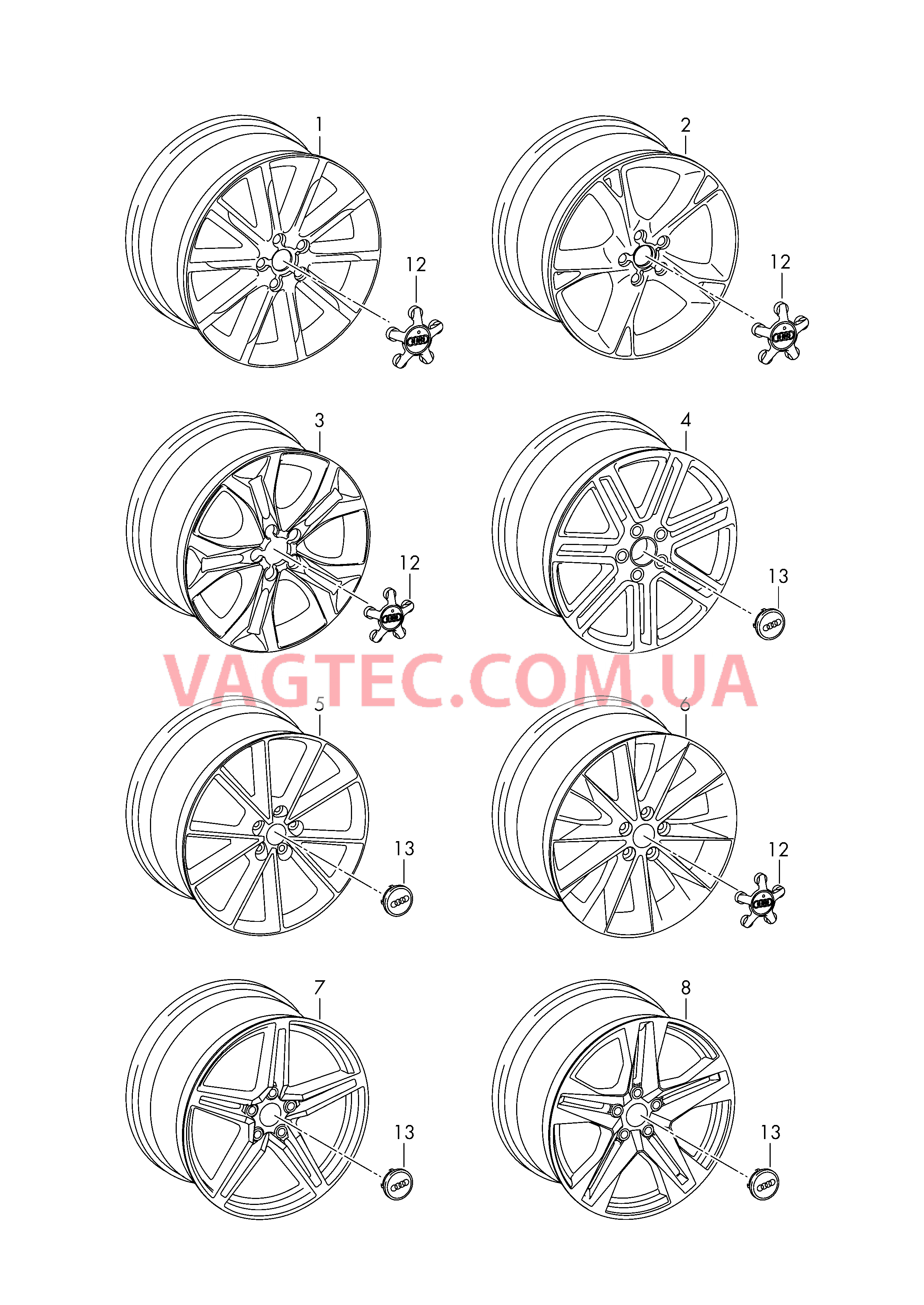 | 13 | 8T0601170A | Колпак колеса | 4 | PR-C5H,CJ3, 44W,CL0 | |