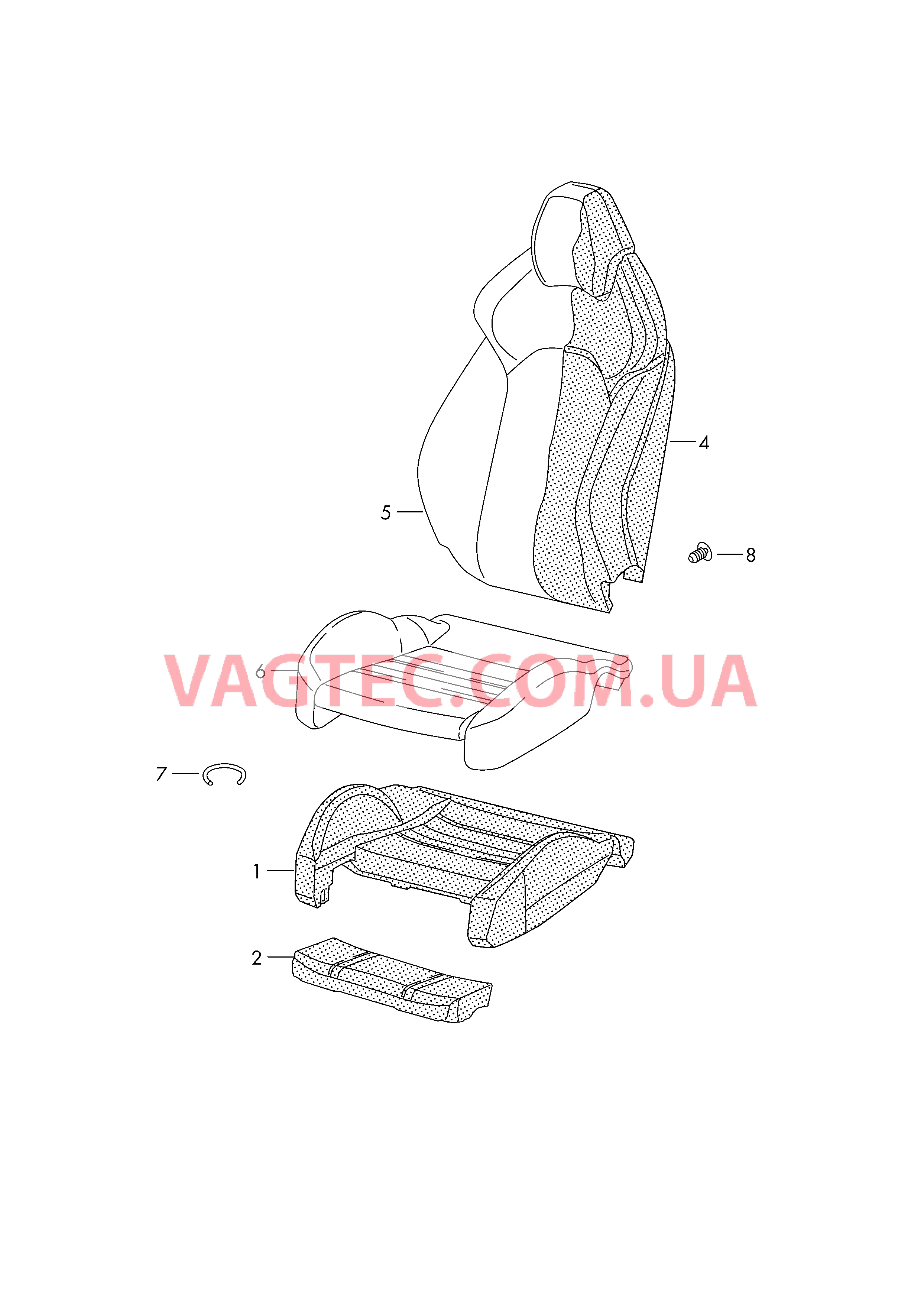 | 6 | 4G0881406AP | Обивка сиденья (кожа) | прав. | 1 | PR-N5M |