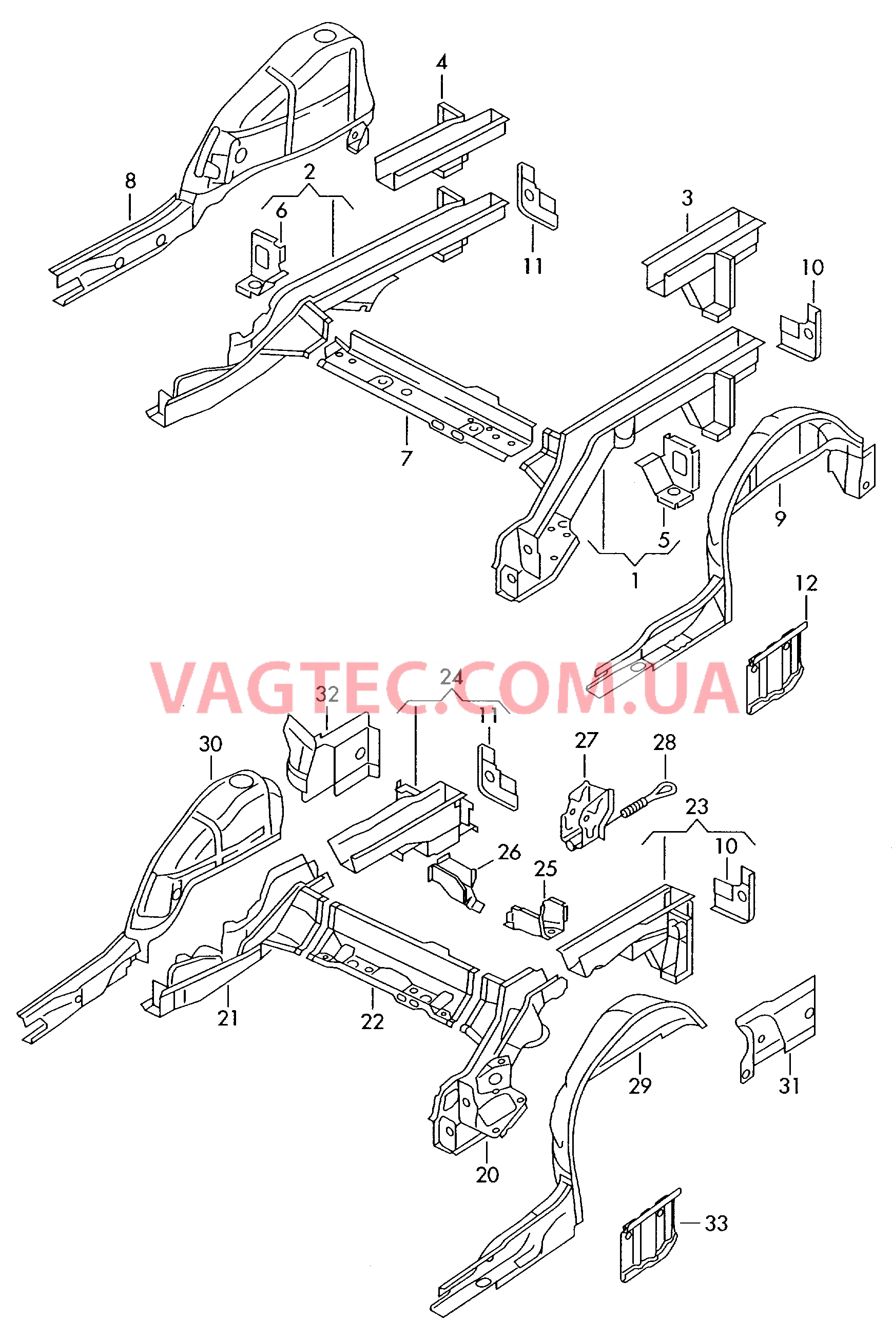 | 32 | 8N0802092 | Концевой элементлонжерона | прав. | 1 | |