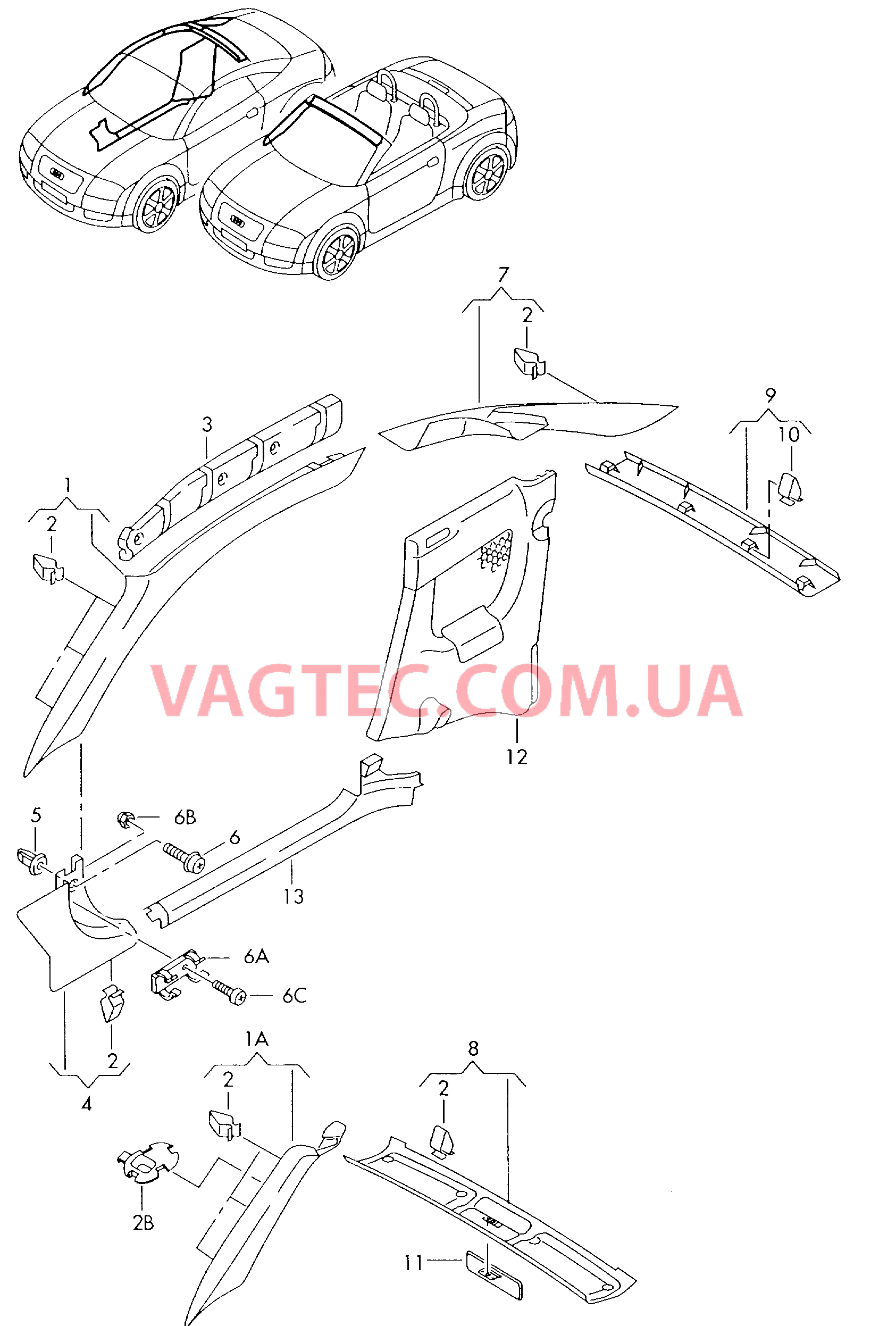 | 1 | 8N8867231A | Облицовка стойки А | лев. верхн. | 1 | COUPE |