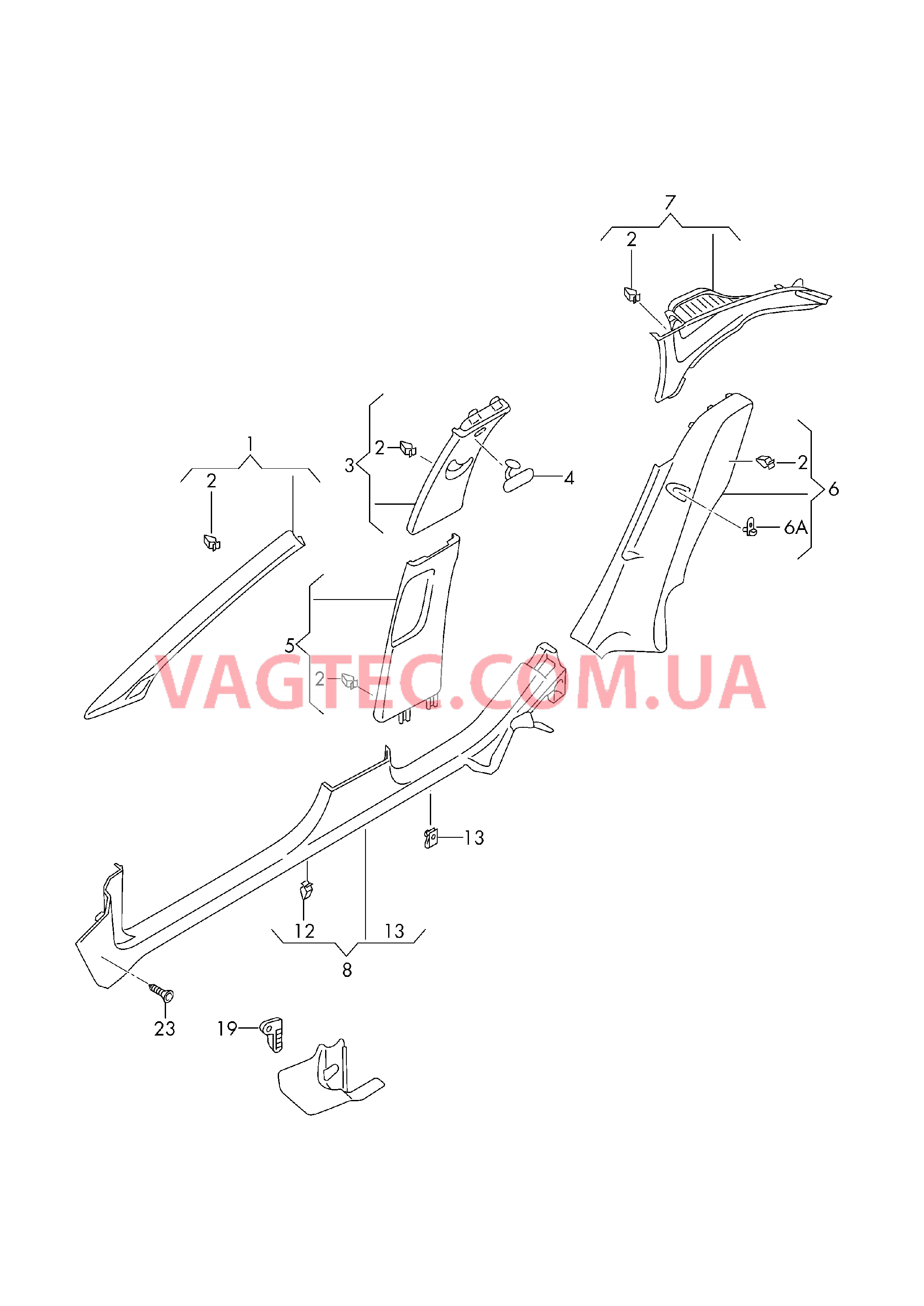 | 8 | 6F0863484A | Облицовка стойки А | прав. нижн. | 1 | |