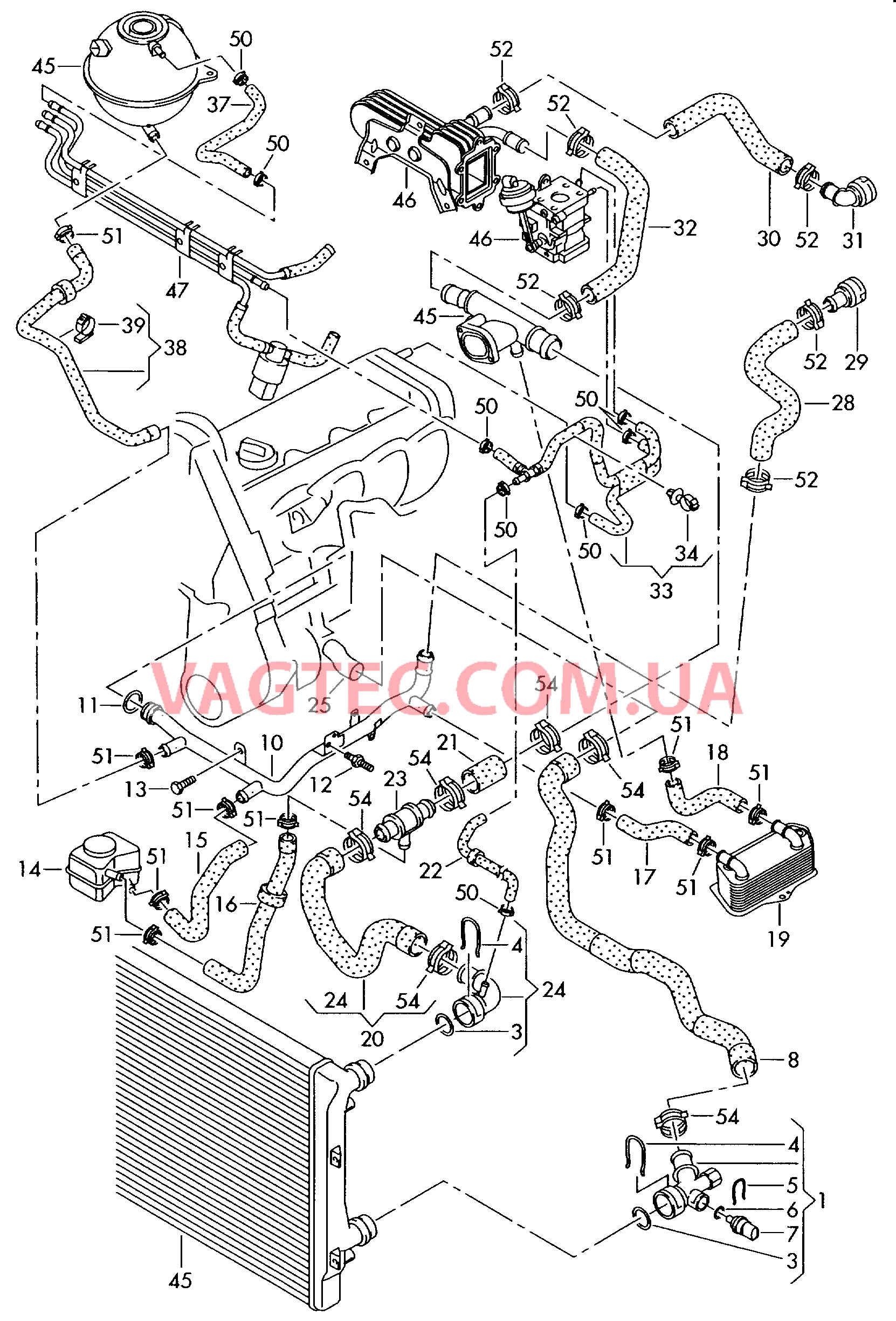 | 32 | 1K0121157AG | Шланг системы охлаждения (охладитель ОГ > фланец) | 1 | ||
