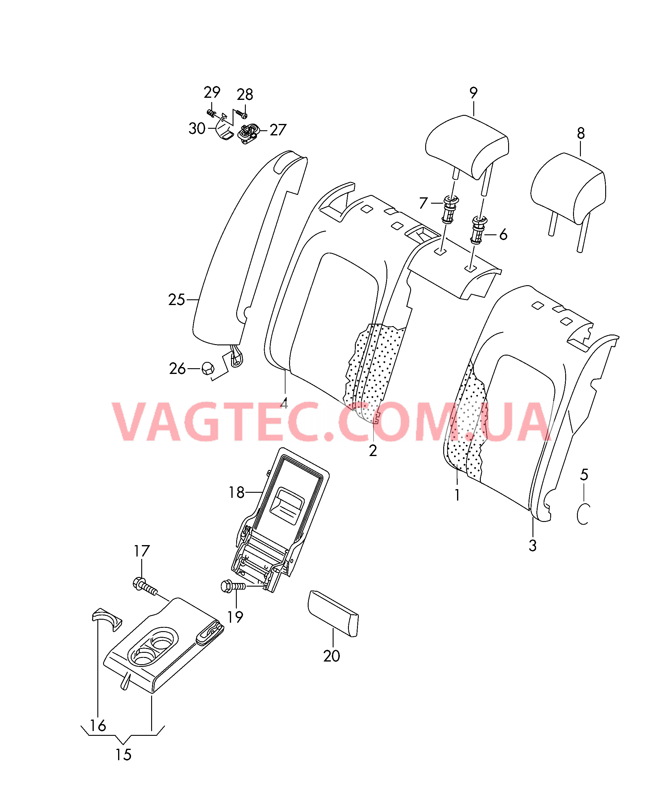 | 9 | 5F0885902G | Подголовник с обивкой, с регу-лировкой (ткань) | средн. | 1 | PR-N0E |