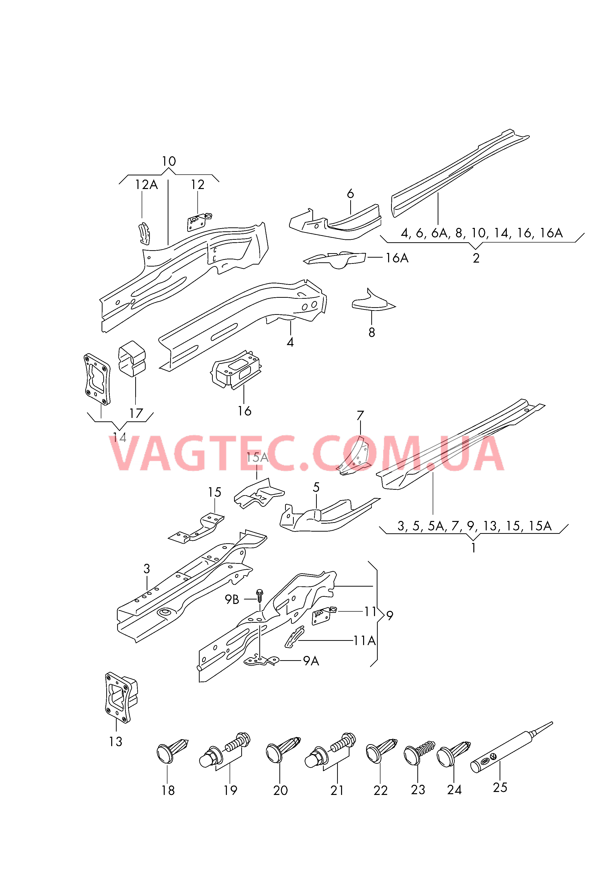 | 3 | 5Q0803105 | Лонжерон | слева спереди | 1 | |