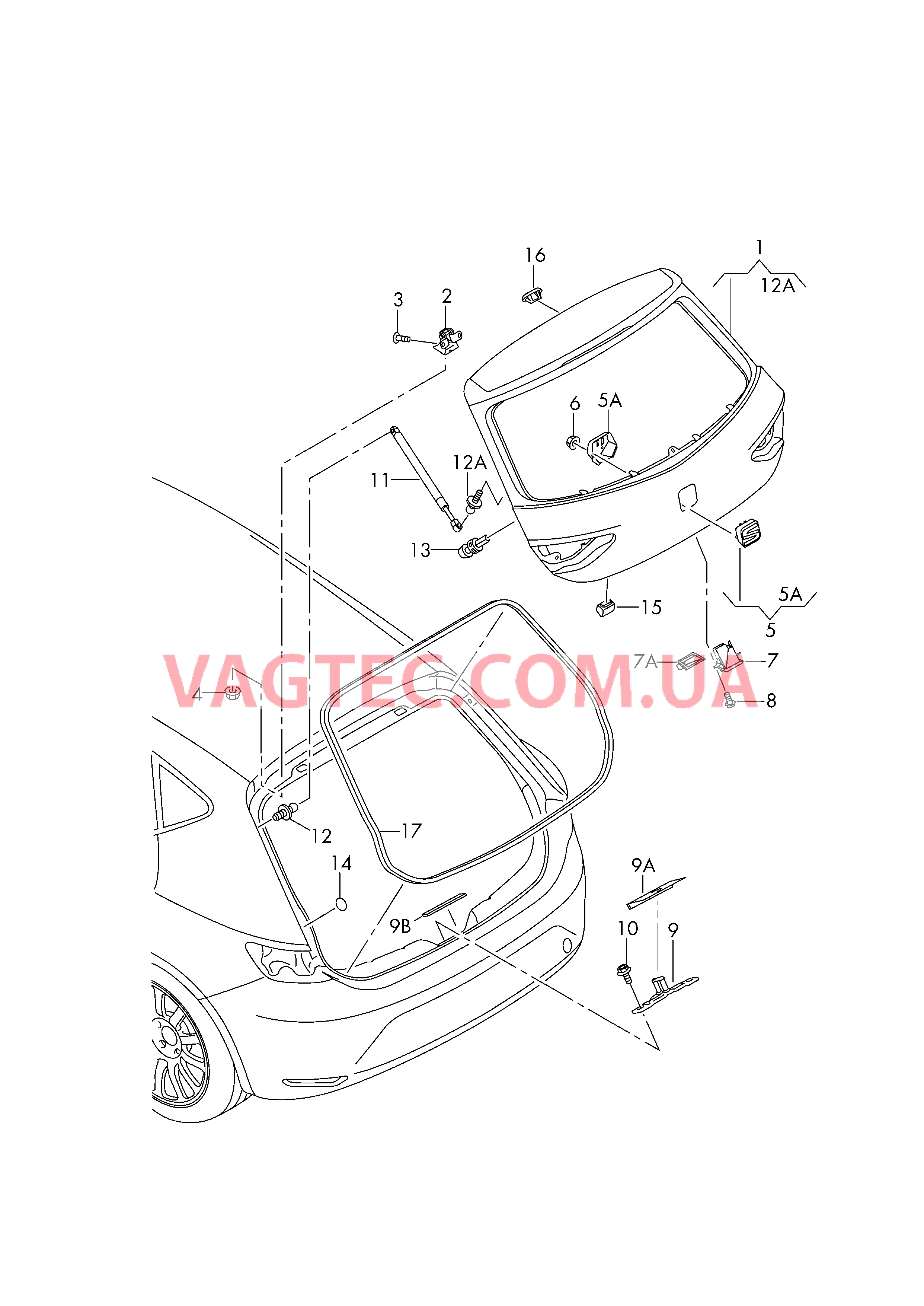 | 1 | 5F4827024 | Крышка багажного отсека содержит дополнител. позиции: 12A | 4-дверный | 1 | PR-K8G |