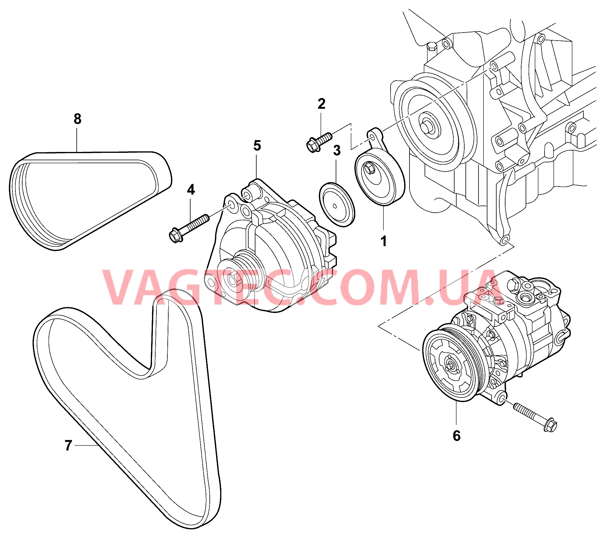 | 8 | 03L998037C | Ремкомплект поликлиновогоремня с монтажным инструментом использ. только в сочетании с: | 21,36X701MM04C 105 243 A | 1 |