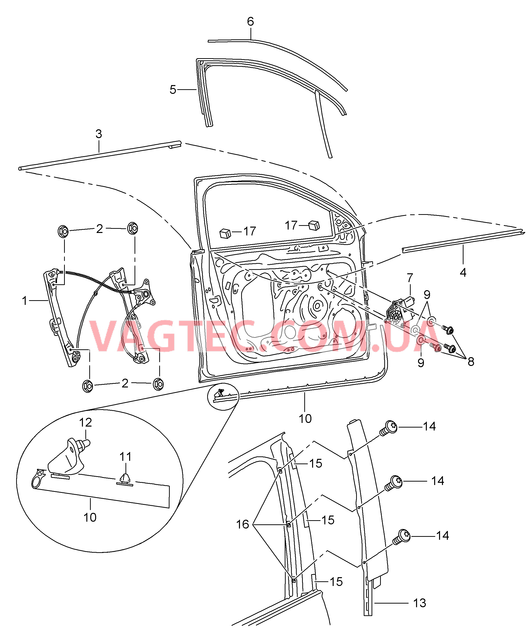 | 1 | 5E0837462B | Cтеклоподъемник | справа спереди | 1 | PR-4KA,4KC, |