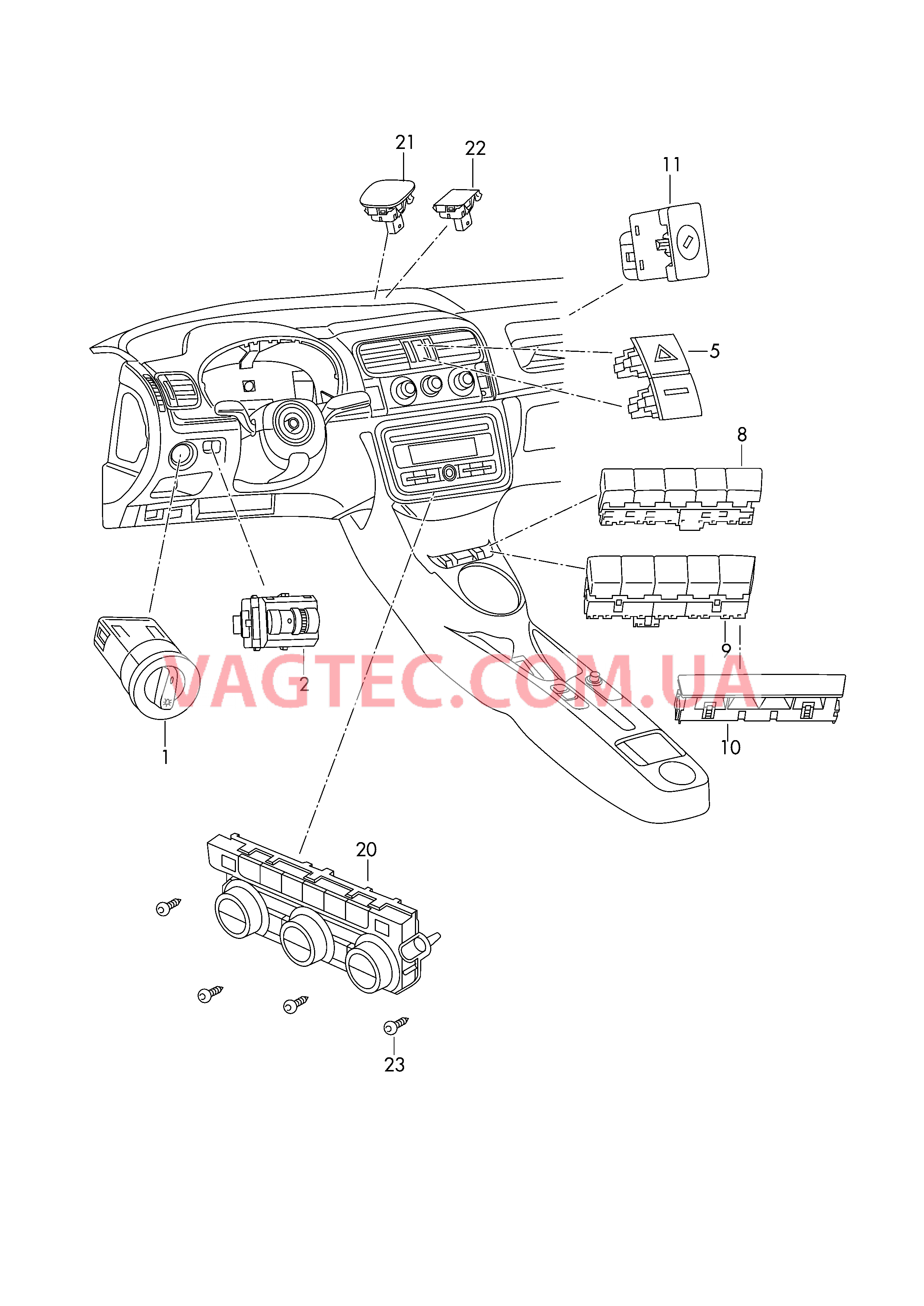 | 5 | 5E0953507E | Выключатель авар. свет. сигн. + Контрольная лампа отключенияподушки безопасности передне-го пассажира | 1 | PR-4UF,4UP | |