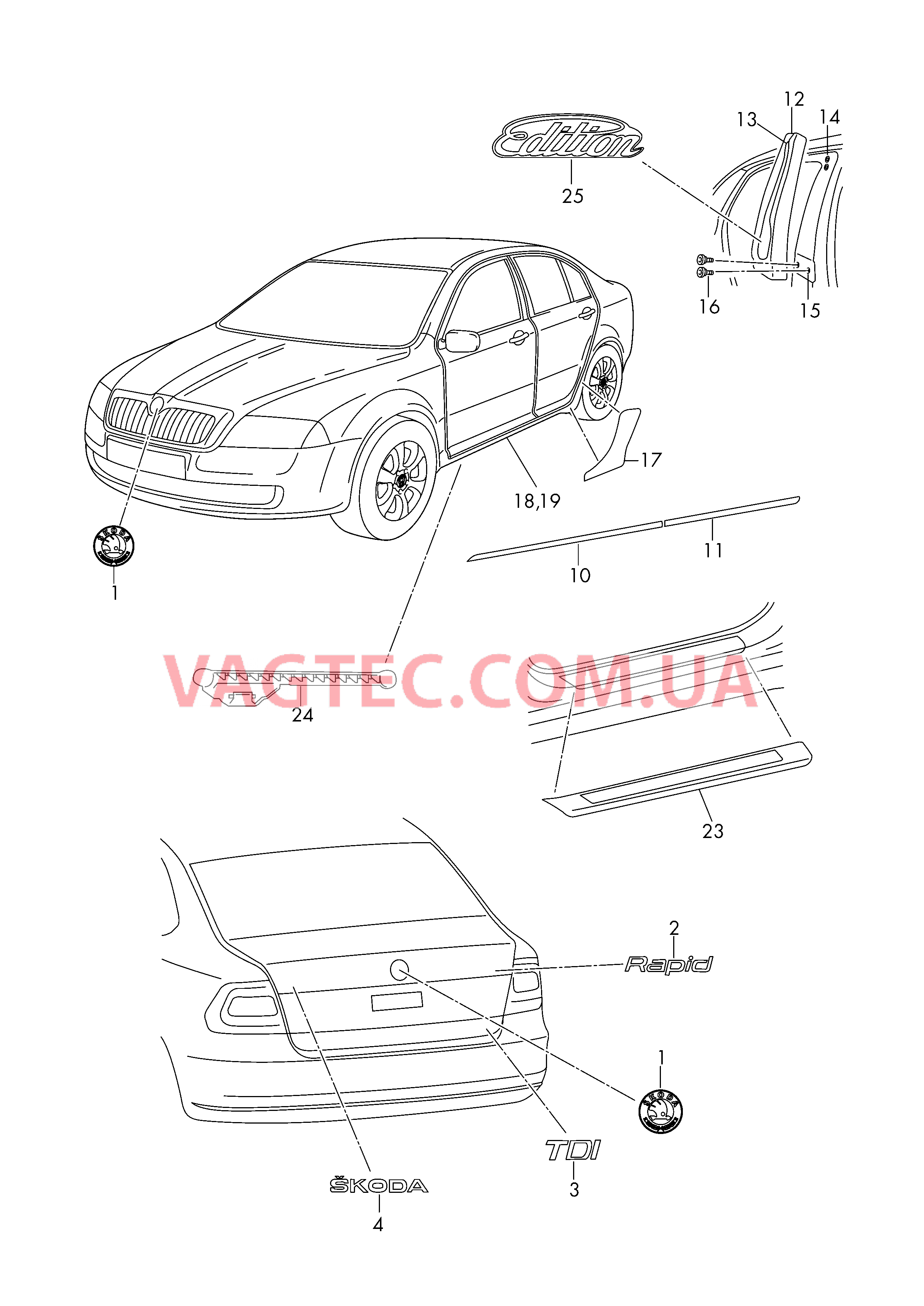 На нашем сайте Вы можете найти онлайн каталог по подбору оригинальных запчастей в том числеНадписи Защитные молдинги Декоративные накладки для SKODA Rapid 2017 года. В случае если у Вас возникнут вопросы или сложности с подбором деталей на SKODA Rapid 2017 года Вы всегда можете обратиться к нашим менеджерам за помощью и консультацией. Обращаем Ваше внимание, что подбор оригинальных запчастей для SKODA Rapid 2017 года по VIN коду дает возможность безошибочного выбора необходимых деталей. Также в нашем интернет магазине Вы можете купить качественные аналоги оригинальных запчастей для SKODA Rapid 2017 года. Подбор (крос) аналогов осуществляется при помощи программы TecDoc (ТекДок), которая является своего рода монополистом в этой сфере.