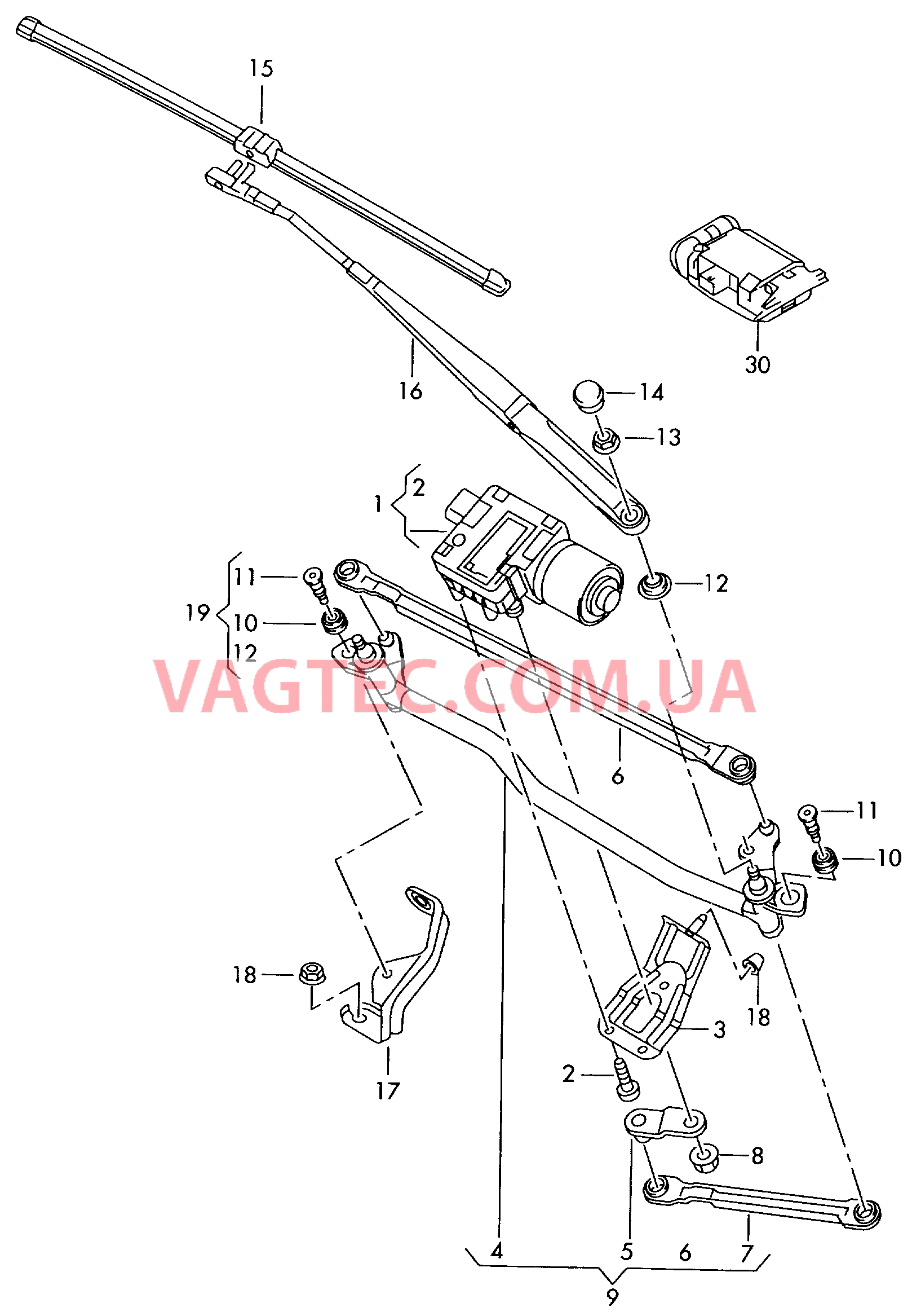 | 9 | 5JC955601 | Опора стеклоочистителясо штангой | ПPPЛ | 1 | |