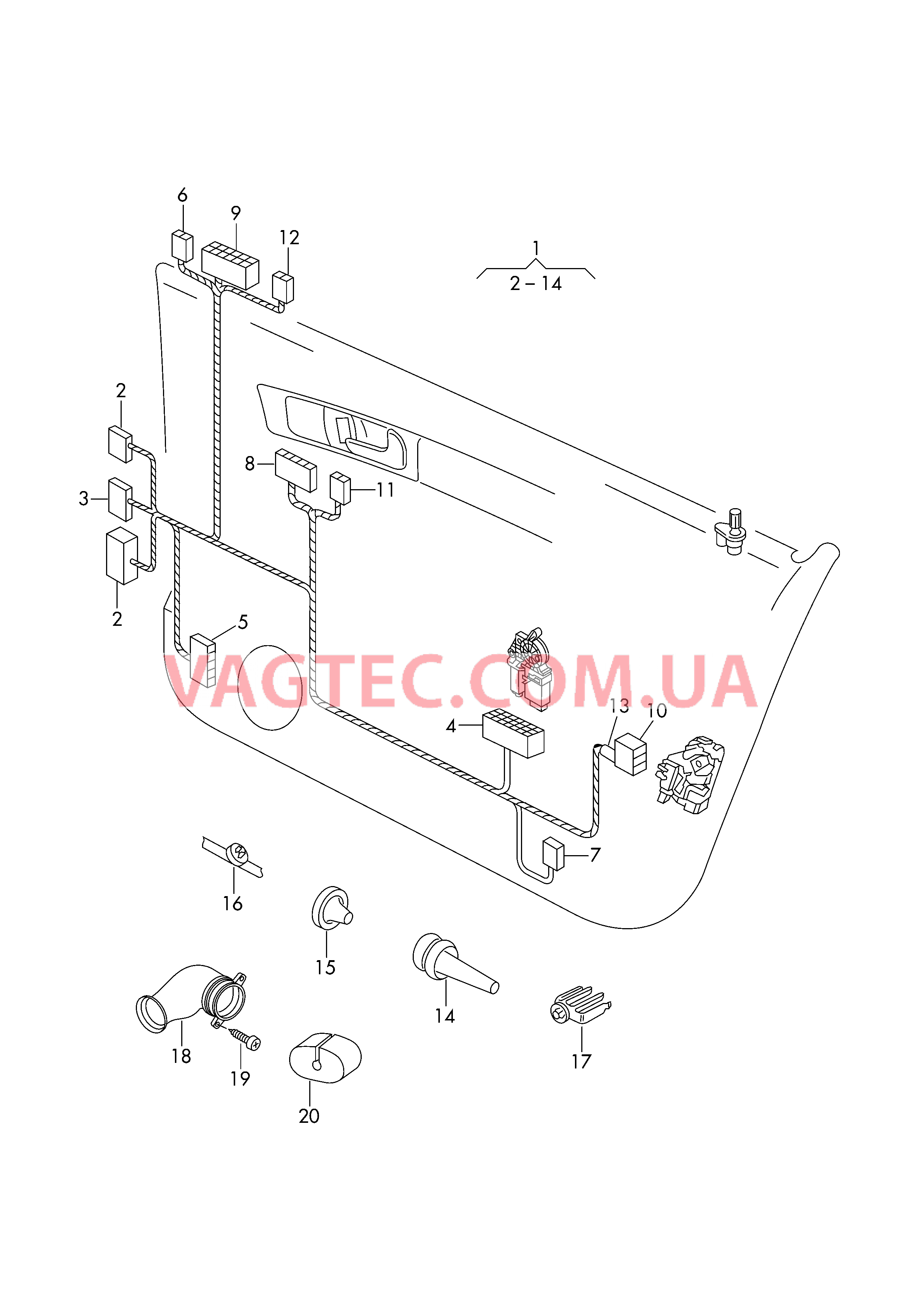 | 18 | 3B0971342D | Канал для кабеля Жгут проводов двери F 3U-39047 829>> | Дв. пер. пасс. | 1 | |