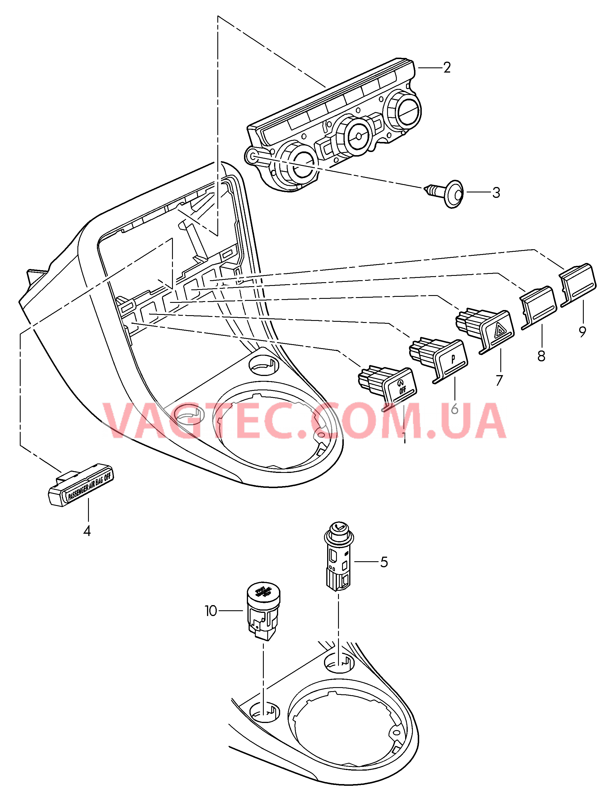 | 7 | 5C5953509B | Клавиша аварийн. свет. сигнал. | 1 | ||