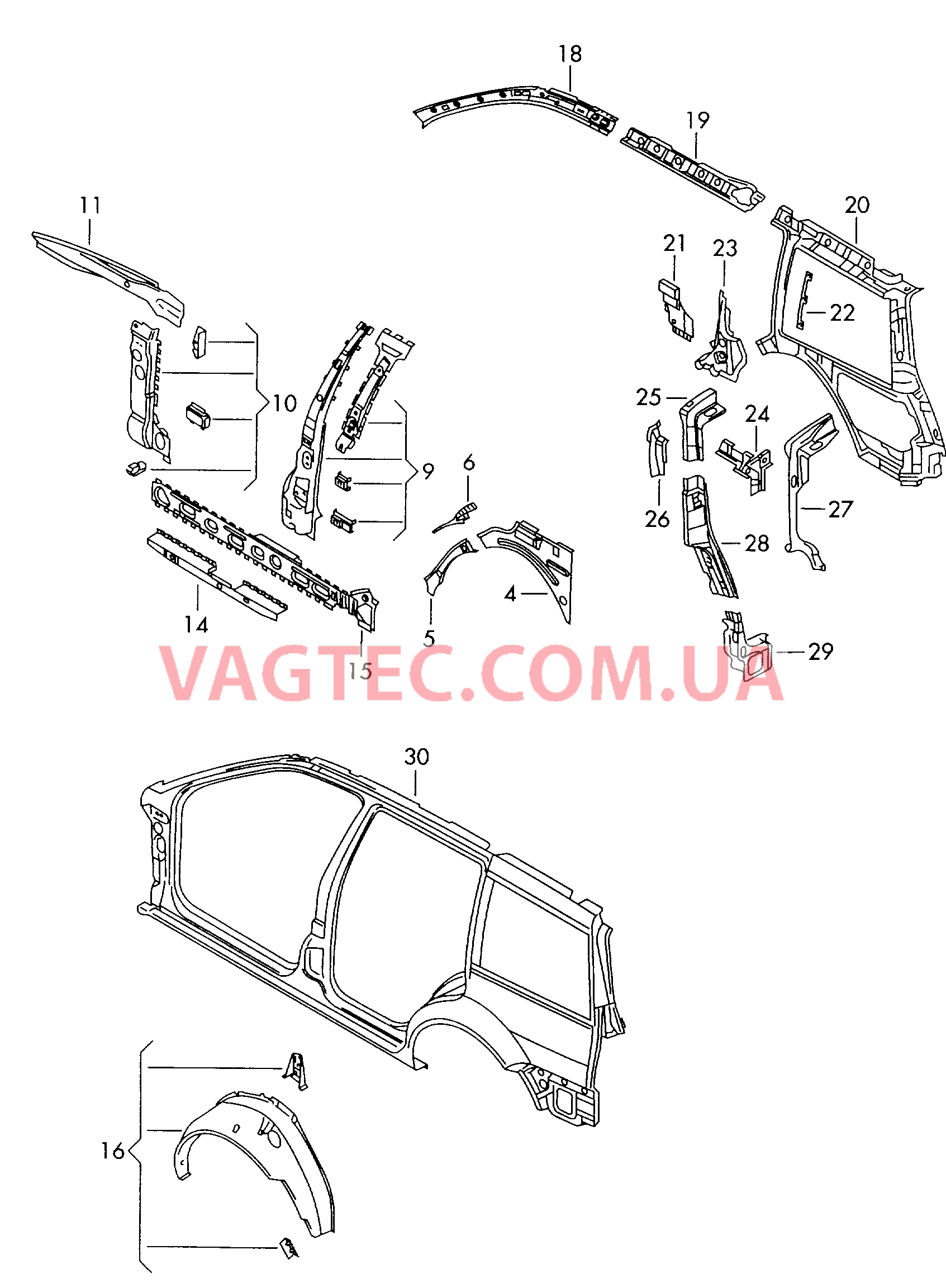 | 30 | 1J9809606G | Деталь боковая | справа снаружи | 1 |