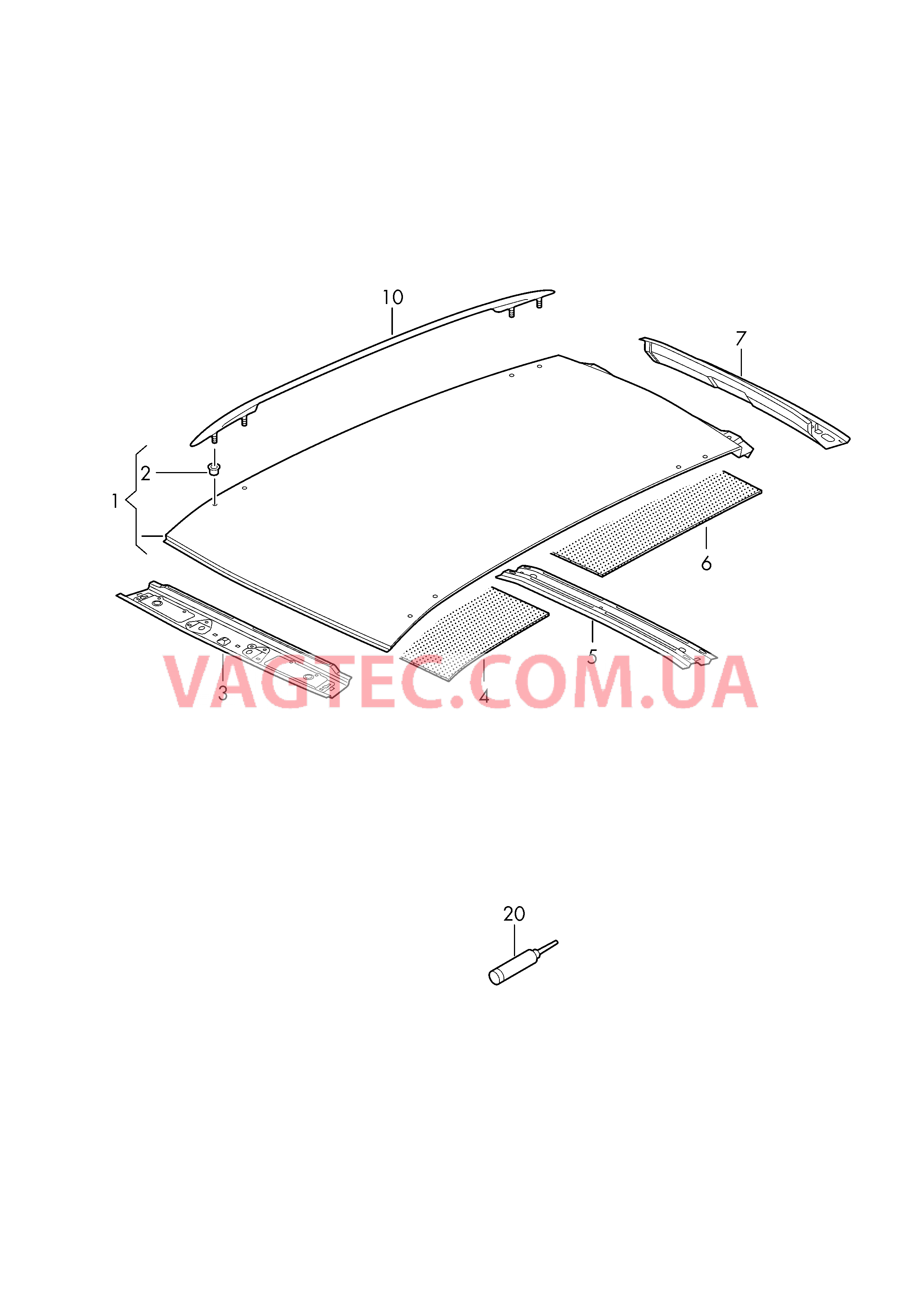 | 1 | 5G9817101A | Крыша для а/м с панорамнойкрышей | 1 | PR-3FU | |