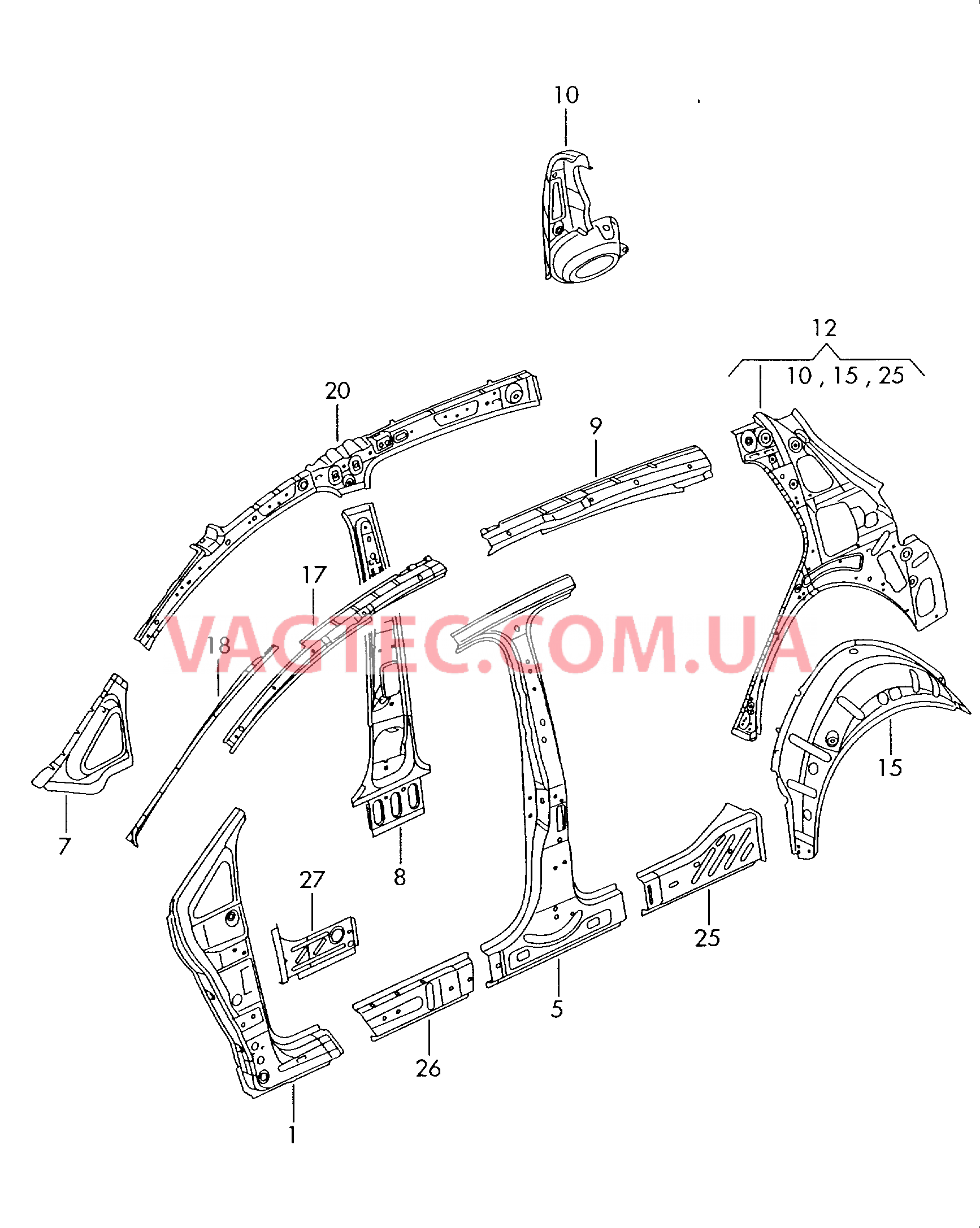 | 12 | 5M0809403 | Боковина, внутренняя | слева сзади | 1 | |