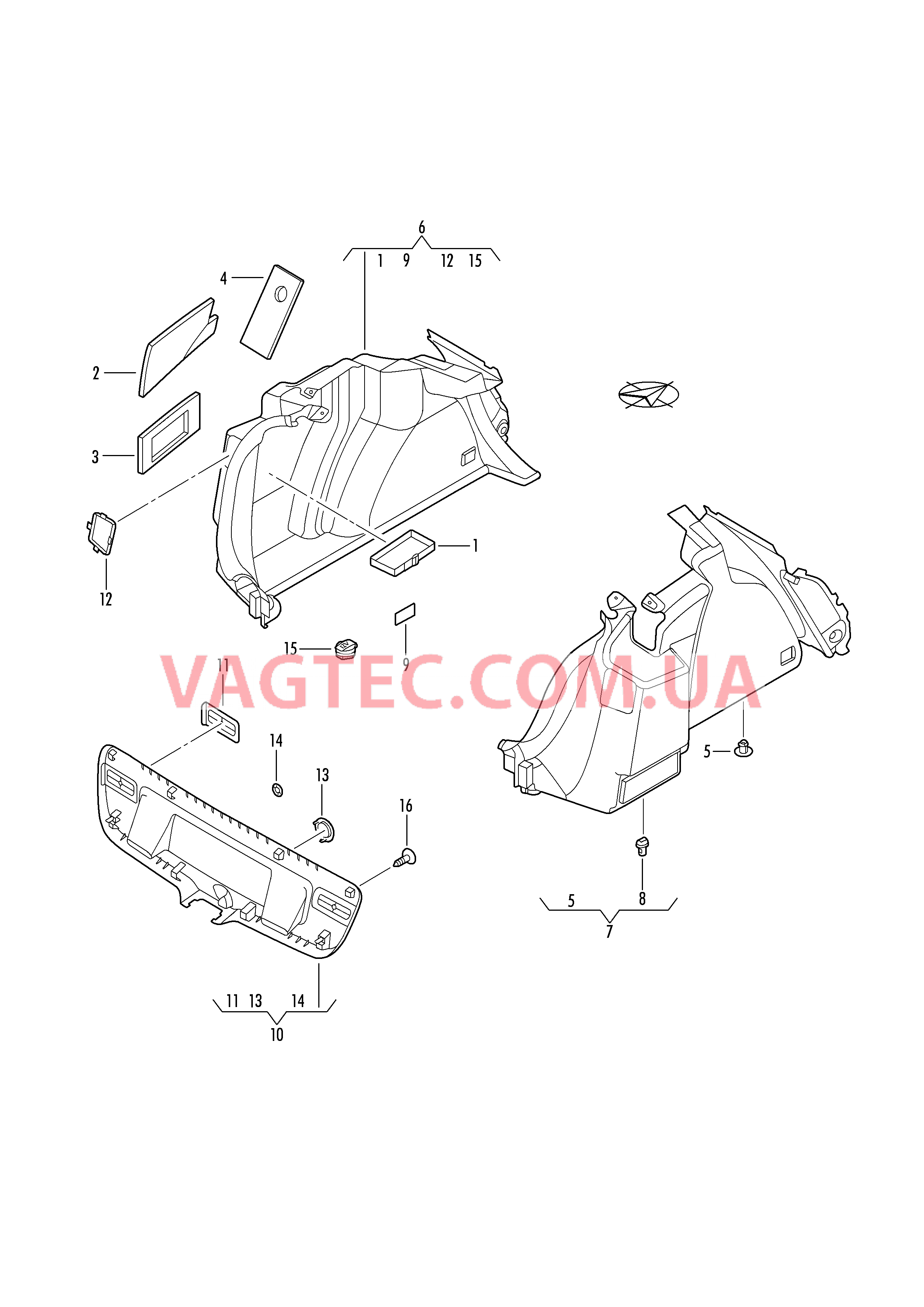 | 7 | 5C6867428AB | Обивка багажного отсека D - 01.01.2015>> | прав. | 1 | PR-5A7 |