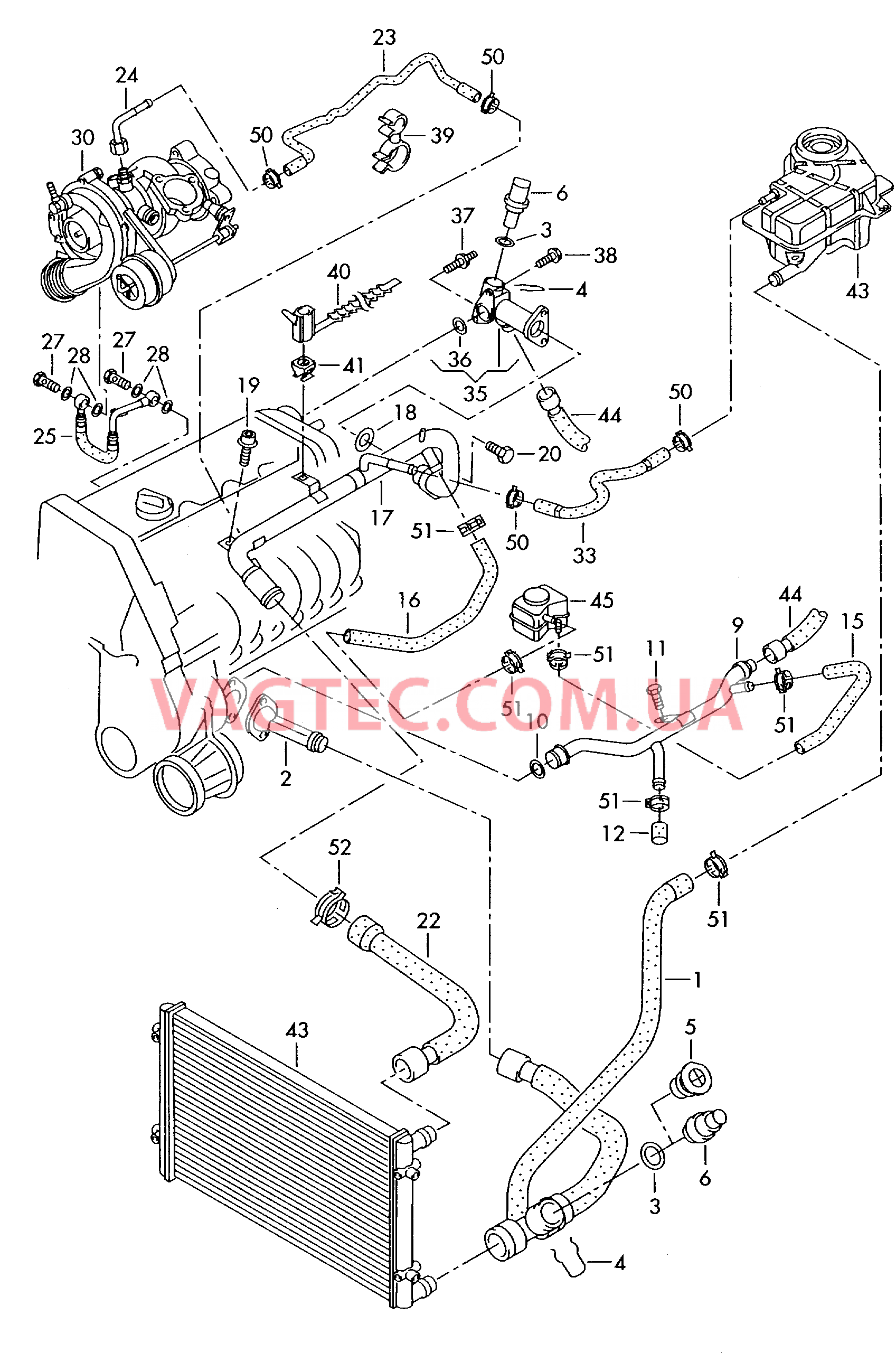 | 17 | 06B121071L | Трубопровод системы охлаждения | Напор. магист. | 1 | |