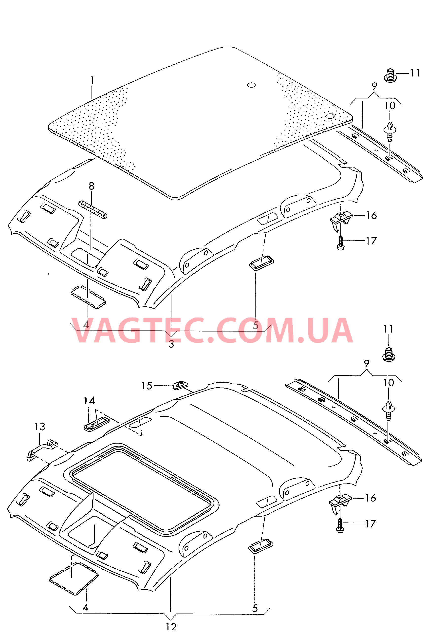 | 12 | 3B5867501DT6K8 | Формованная панель потолка для а/м с люком для а/м с головной подушкойбезопасн. и деформ. элементом жемчужно-серый | -GA,GB,VA,VB; 05.02 - 05.03; больше не поставляется | ||