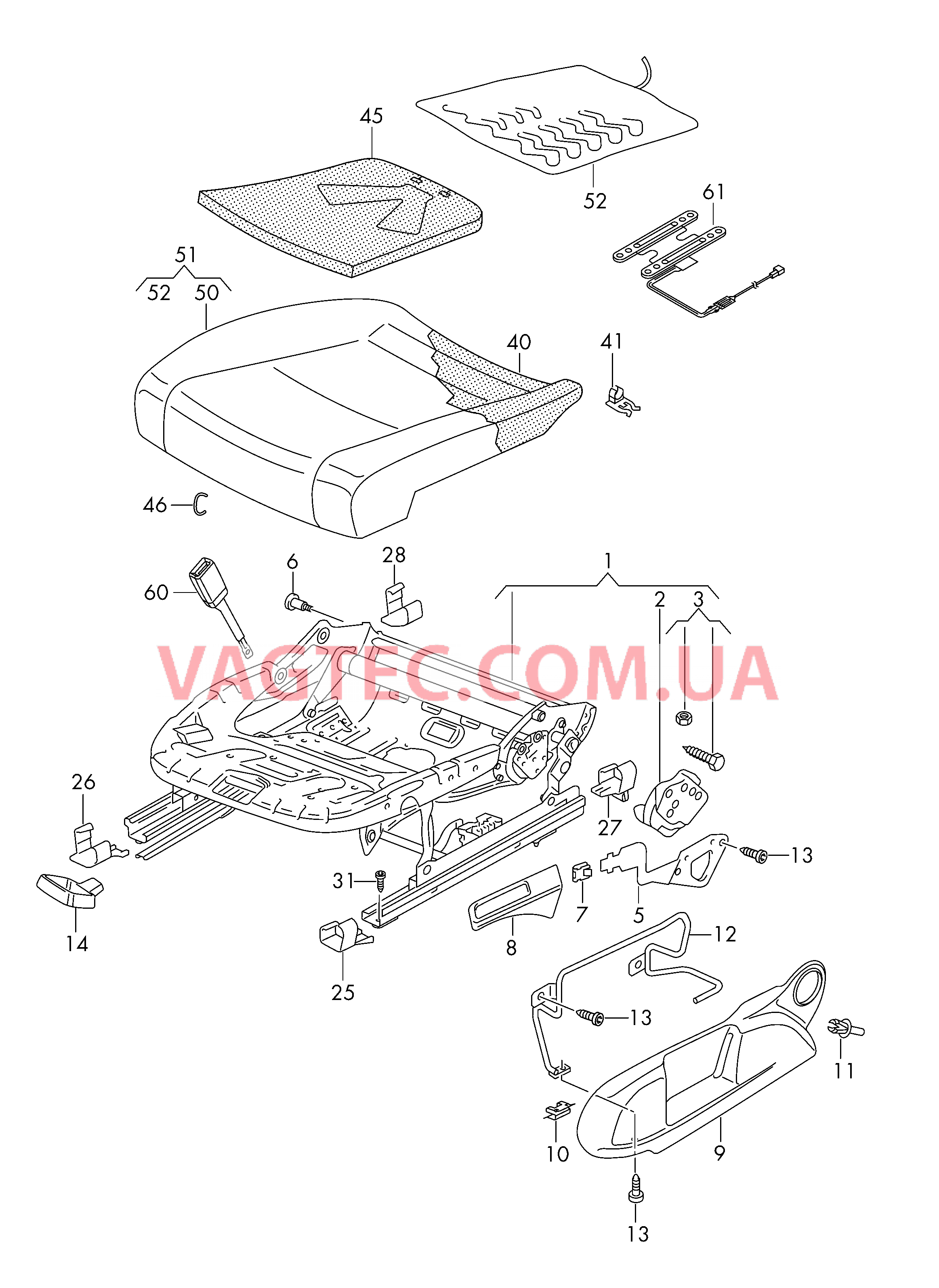 | 51 | 3C0881406BG | Обивка сиденья (ткань) снагревательным элементом | 1 | PR-N0L | |