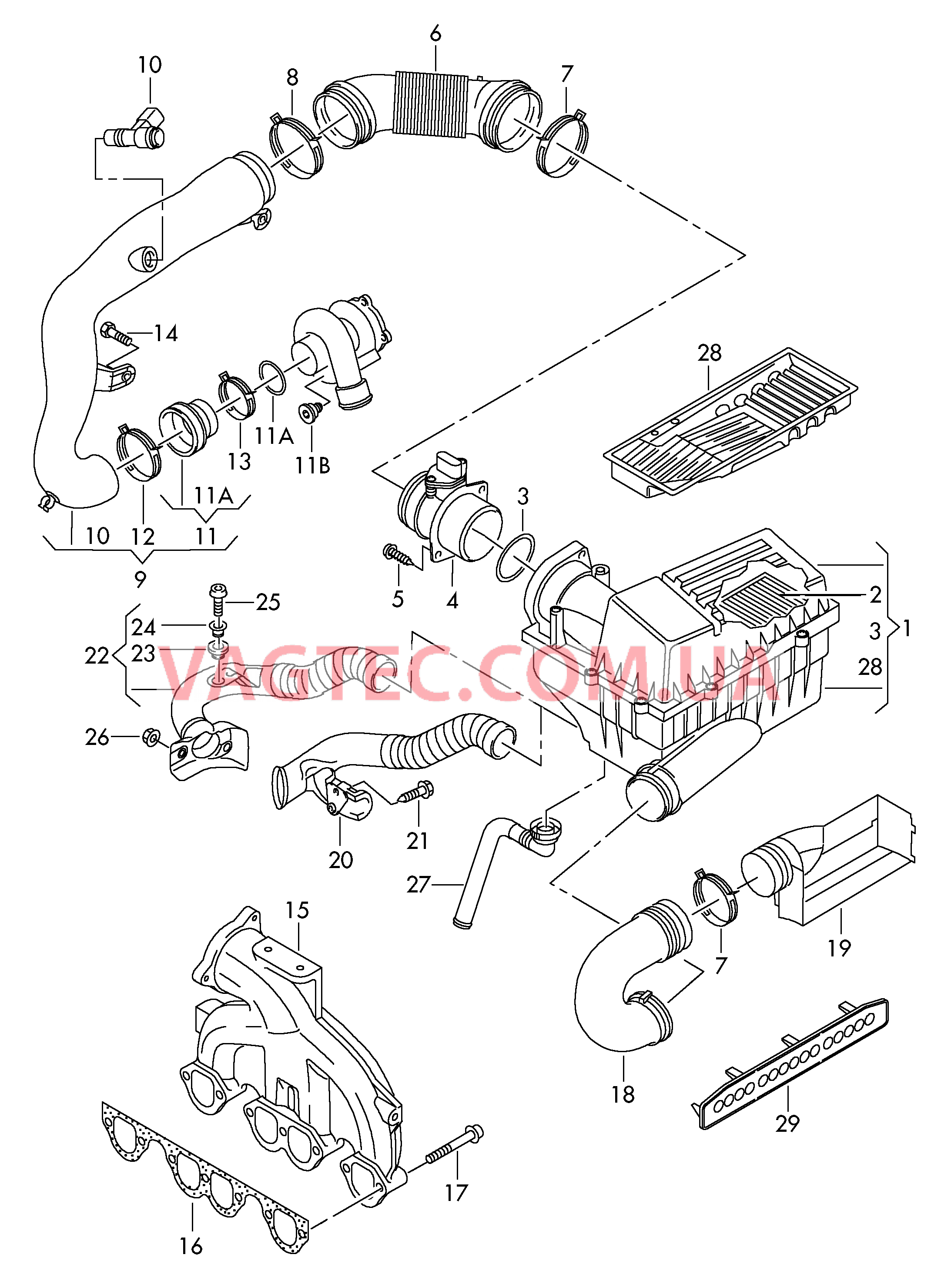 | 11 | 1K0129627B | Шланг забора воздуха | 1 | BXE | |