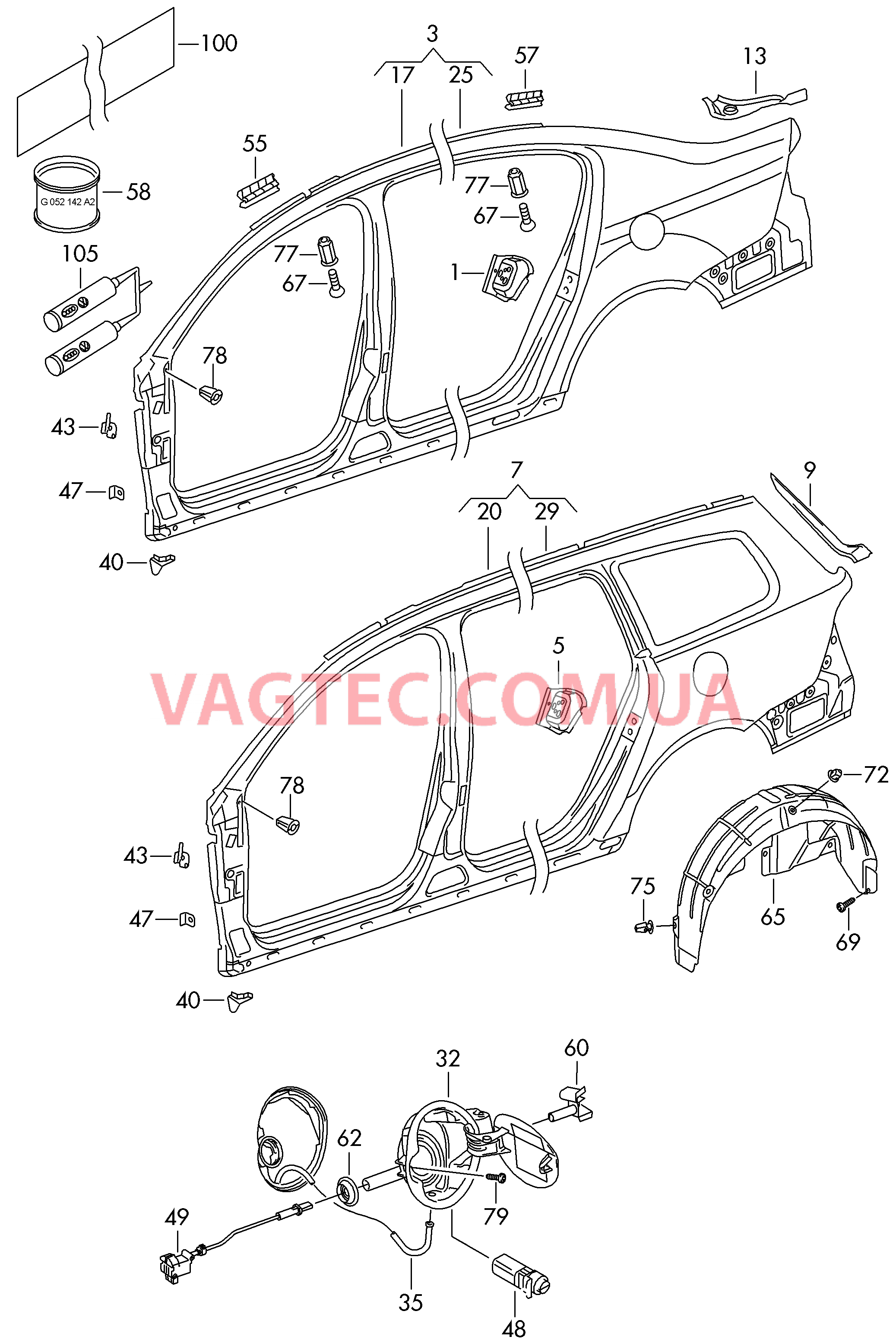 | 65 | 3AA810971B | Локер колесной арки | слева сзади | 1 | |