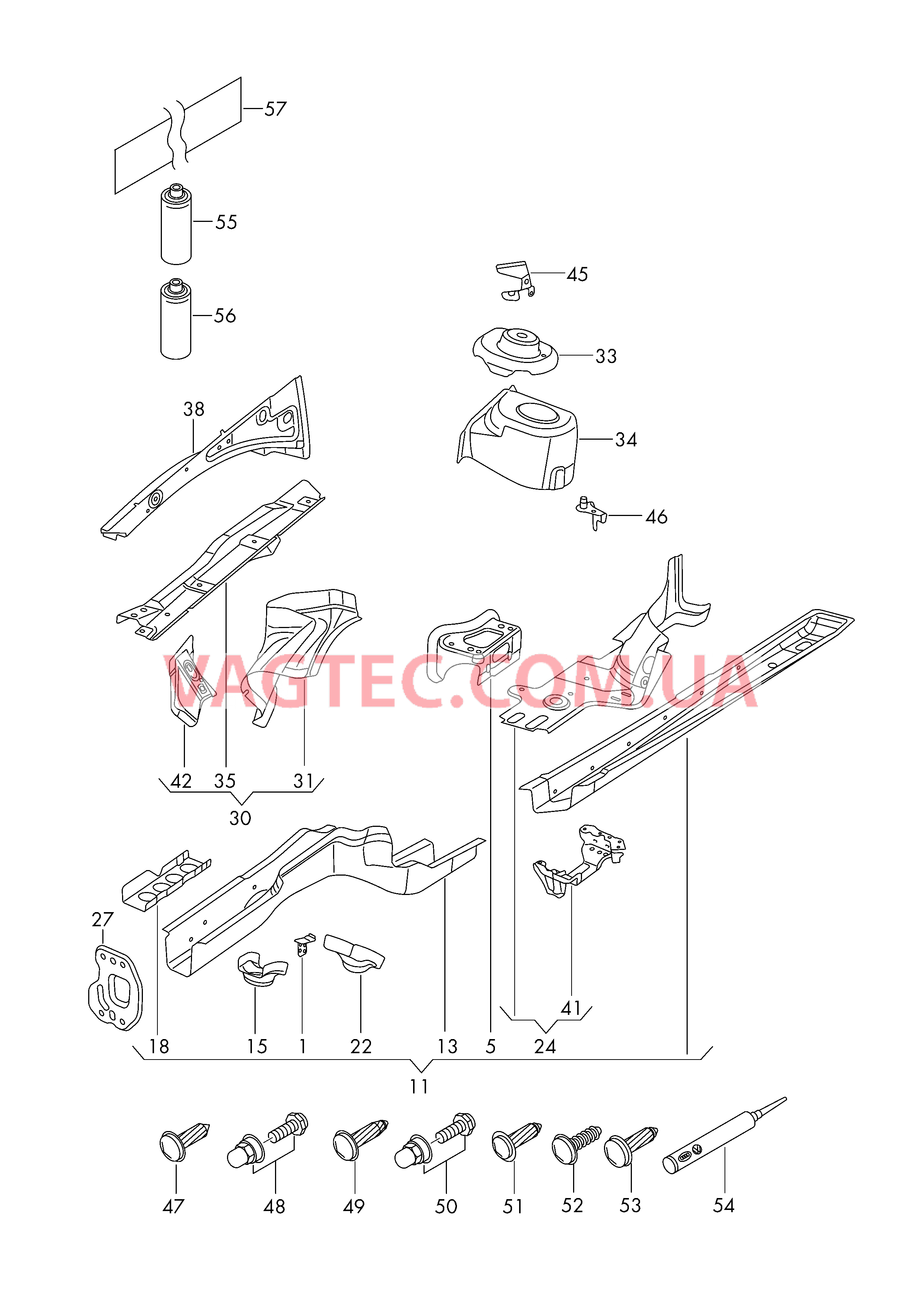 | 11 | 3C0803091 | Лонжерон с усилителями иприварными гайками | слева спереди | 1 | |