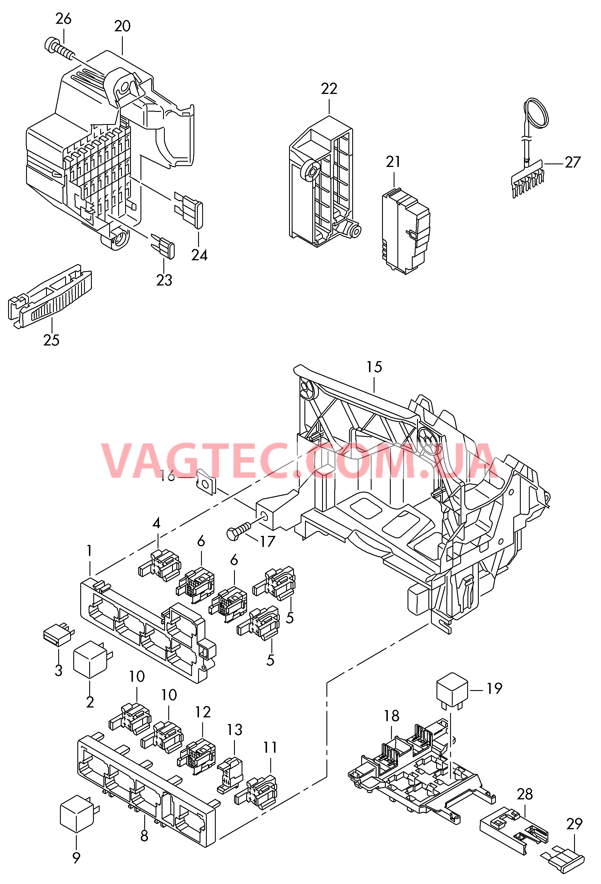 | 22 | 3C2941824B | Гнездо Конт. колодка плавк. предохр. | слева ПPPЛ с 12-ю гнезд. 8K0 937 501 | 1 | |
