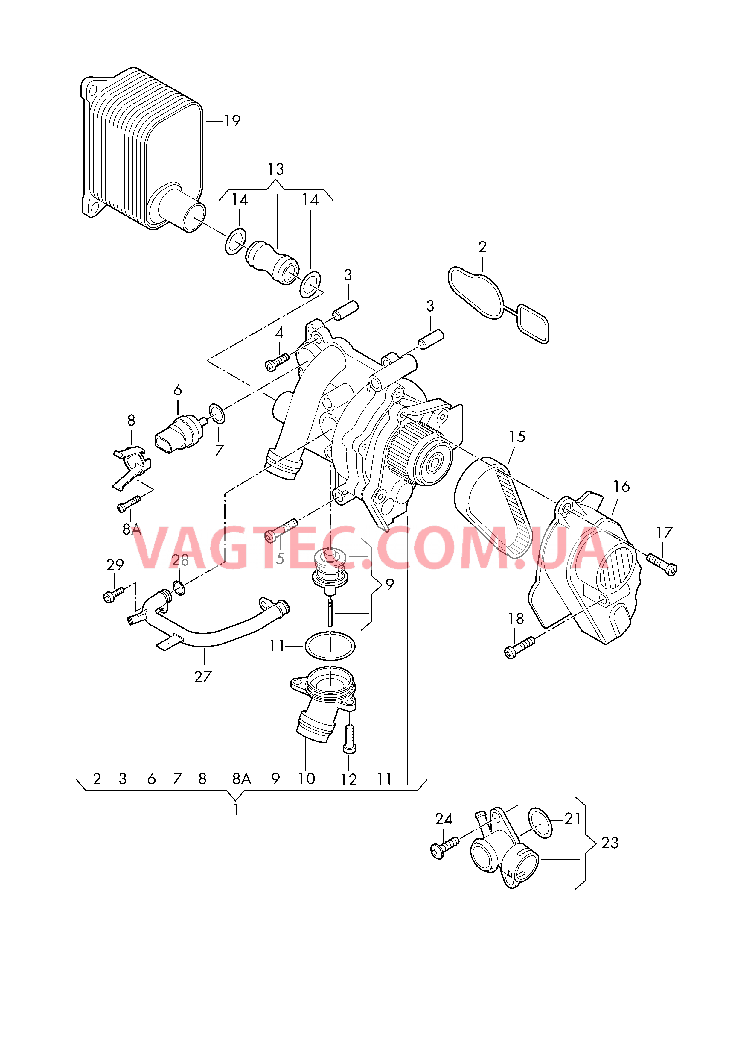 | 1 | 06H121026AG | Насос системы охлаждения и Корпус термостата | больше не поставляется | 1 | CDAA,CDAB |