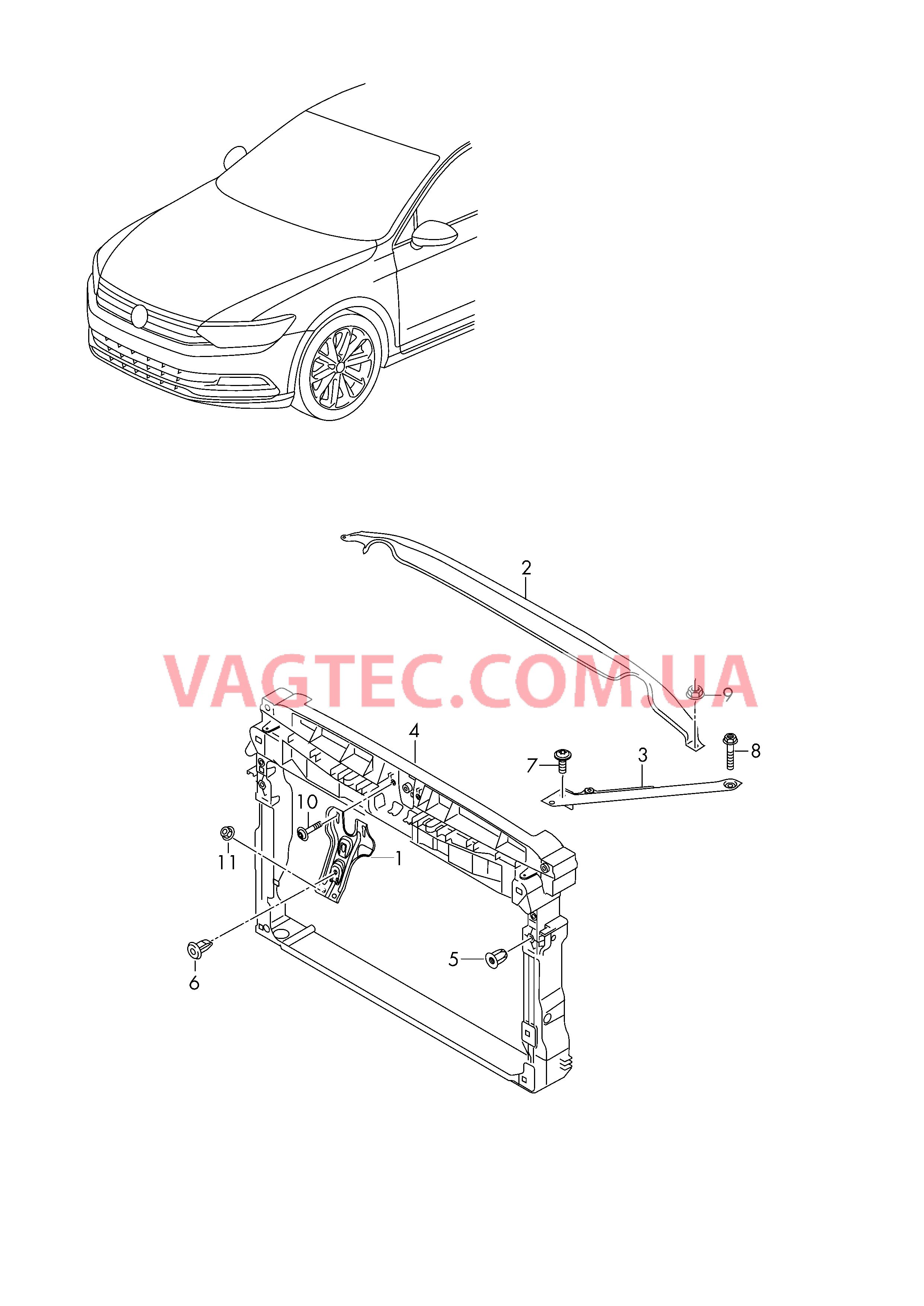 | 4 | 3G0805588E | Передняя несущая панель скреплением для радиатора ОЖ | 1 | PR-DG6+8Z4, 8Z5 | |