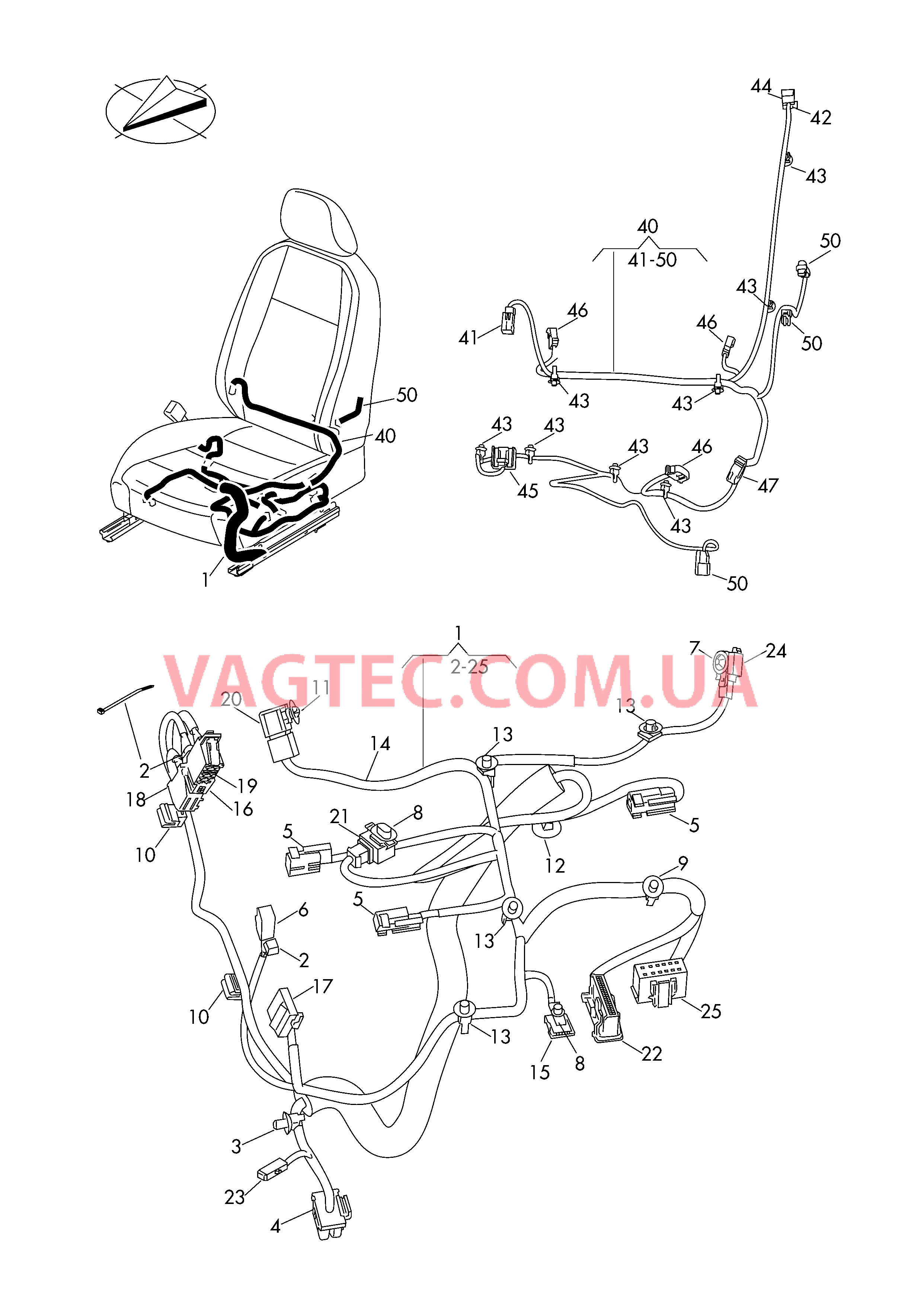 | 40 | 3G0971369AS | Жгут проводов для регулировкиспинки | лев. | X | PR-3PW,4D0, 7P7,9WM,9WU, 9WW,9WY,L0L |