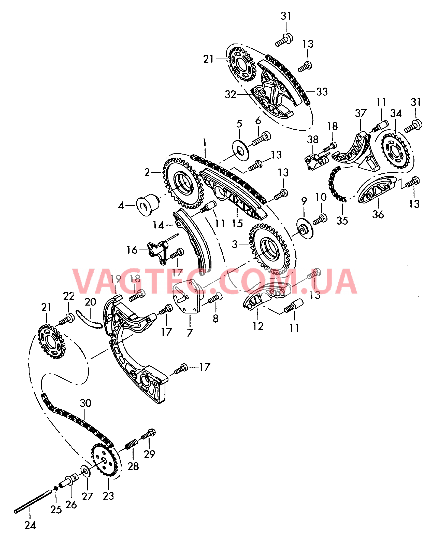 | 38 | 057109217J | Натяжное устройство цепи | лев. | 1 |