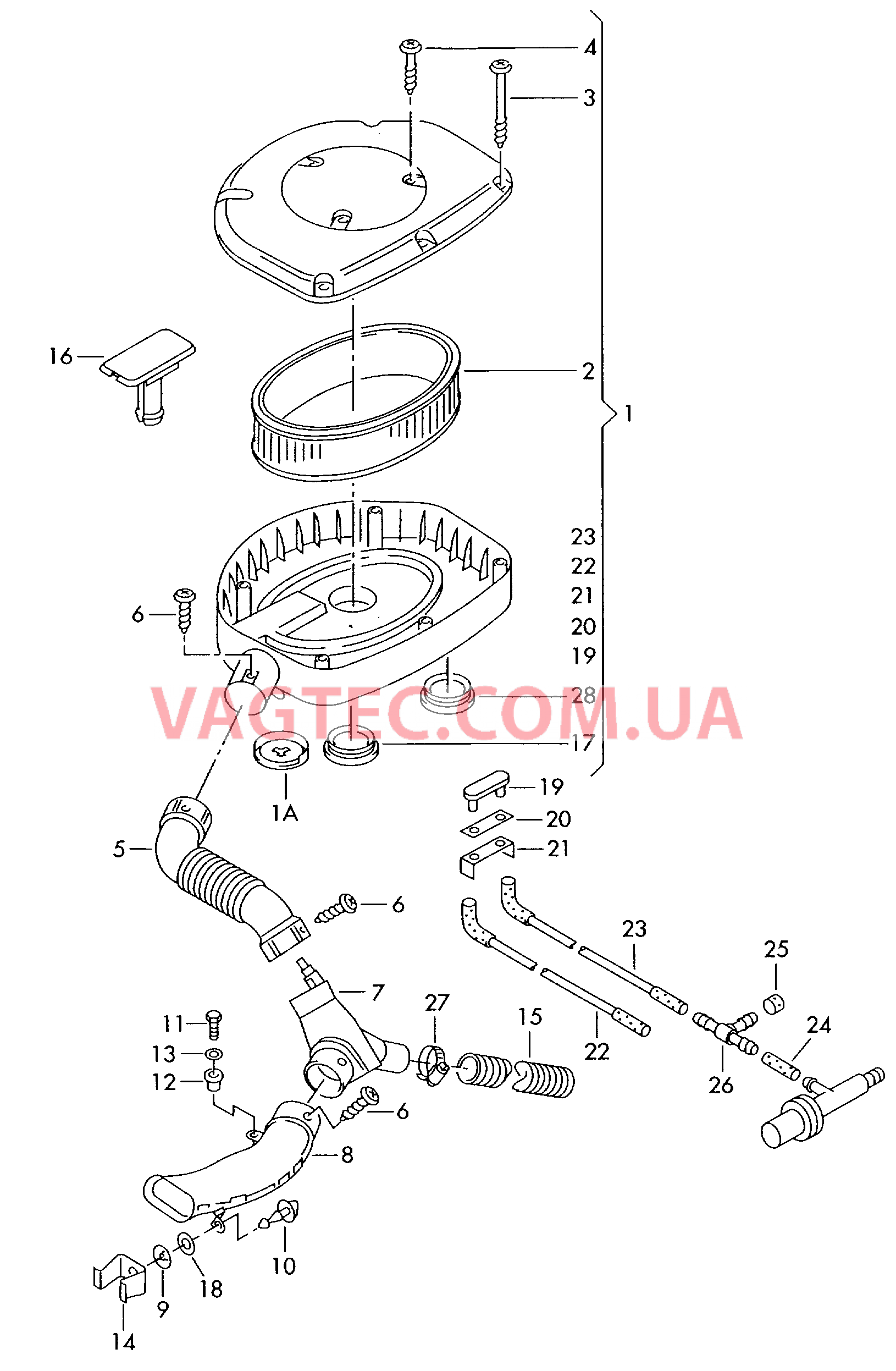 | 5 | 6N0129627AA | Шланг забора воздуха F >> 6N-1D020 000* F >> 6N-1Y070 000* | 08.99 - 06.00 | 1 | Автоматич.: AHW,AUA,APE |