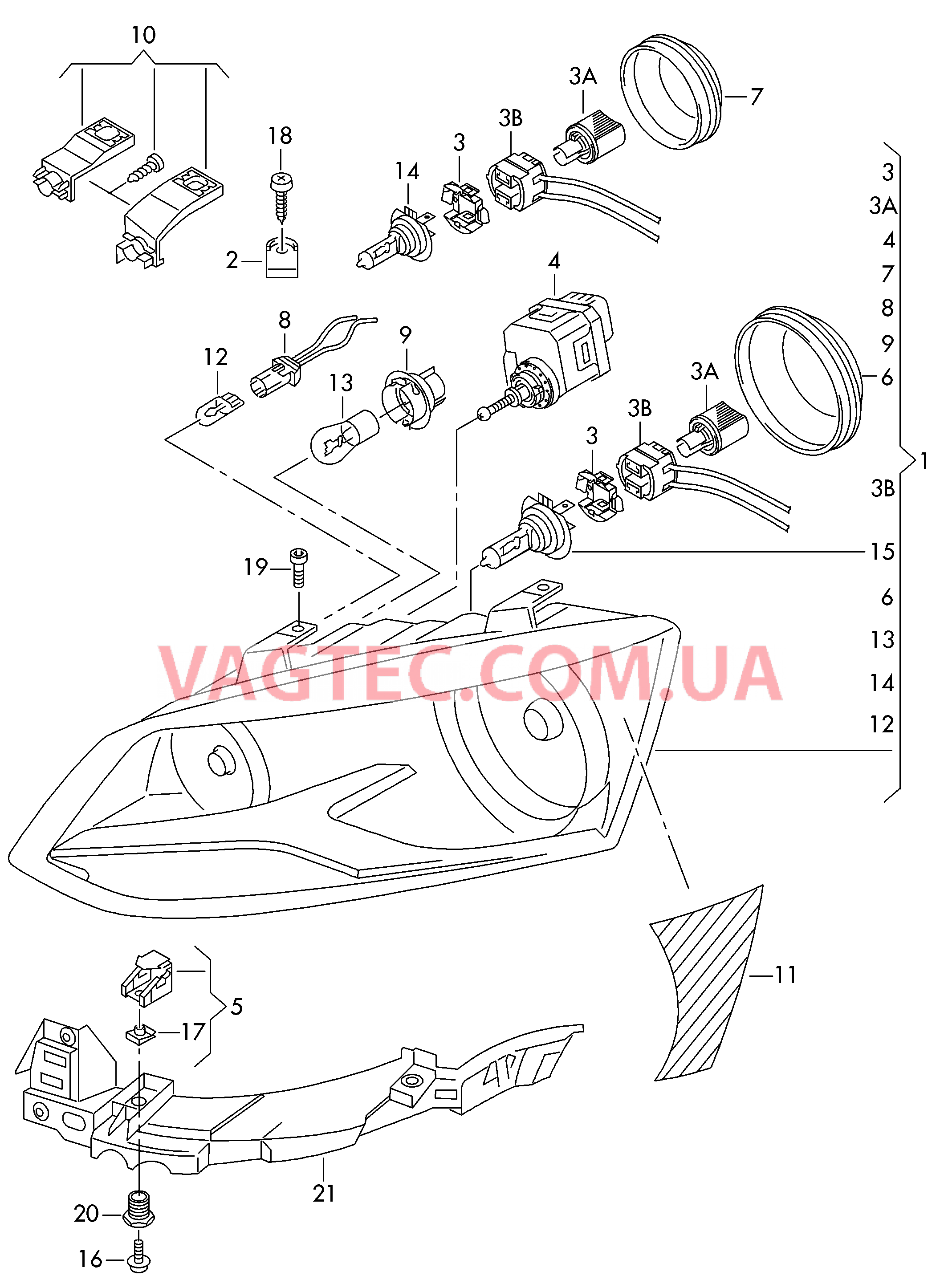 | 6 | 3C0941607A | Колпачок для ближнего света | 110MM | 2 | |