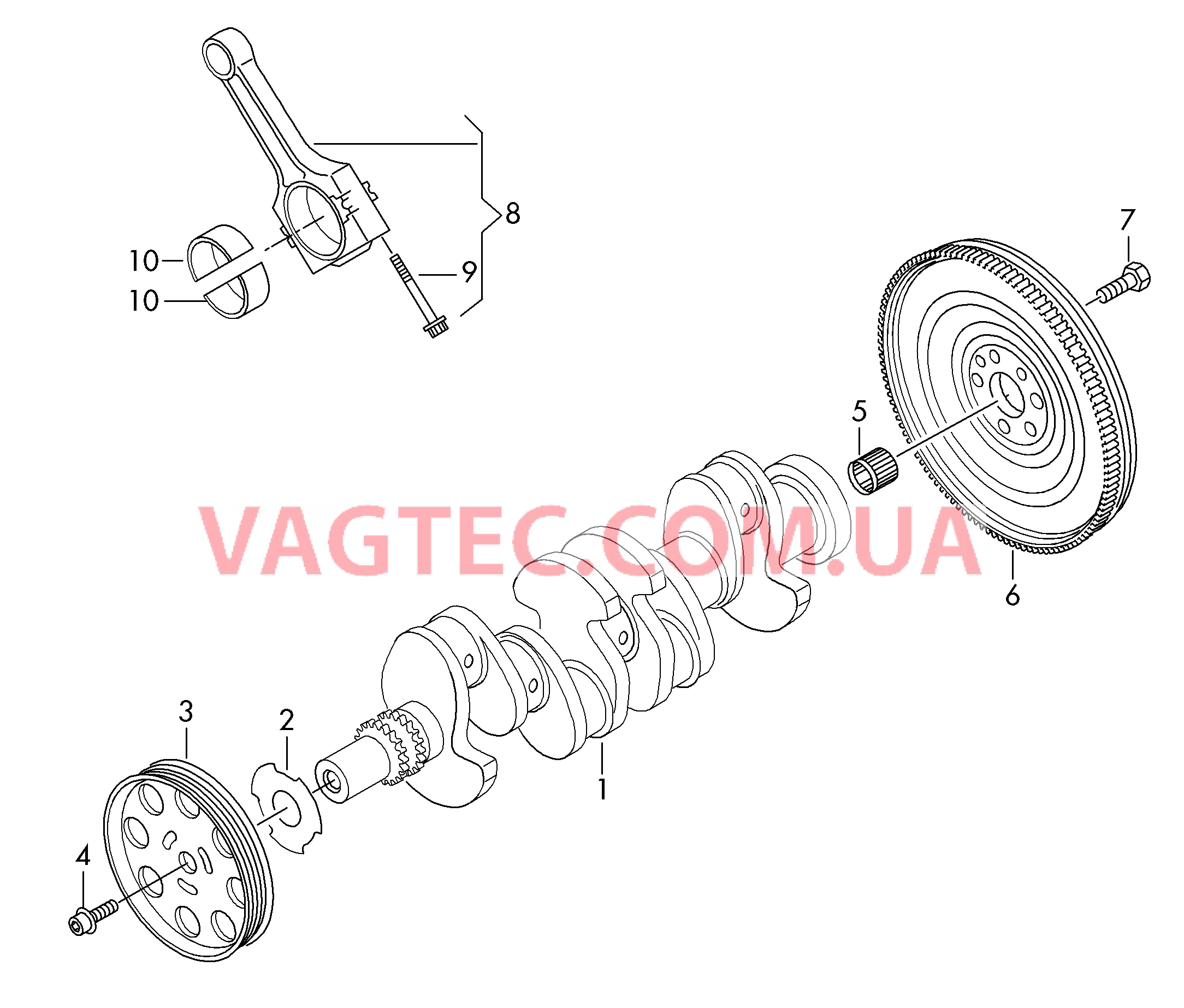 | 9 | 045105425 | Болт крепления крышки шатуна | M8X1X44 | 8 | |