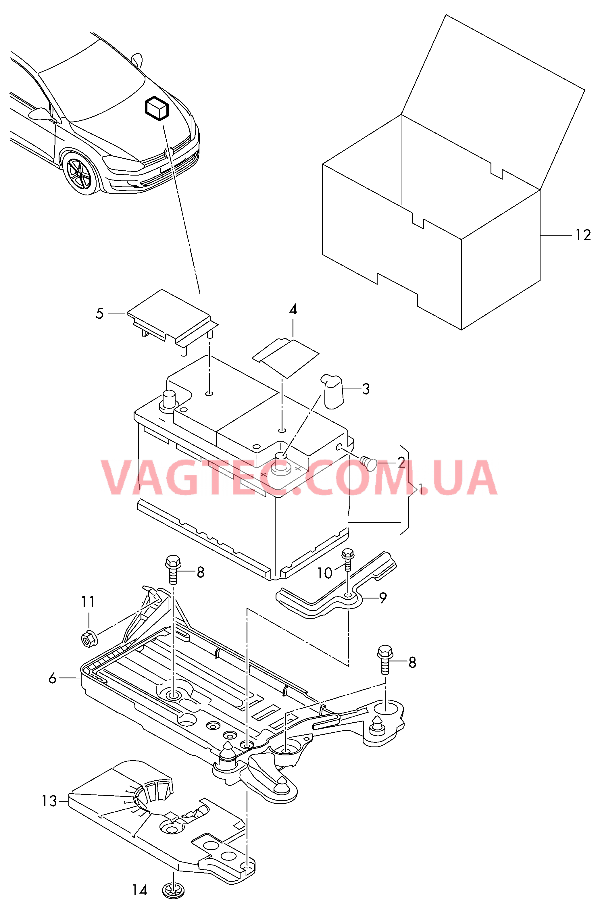 | 12 | 5Q0915411C | Кожух АКБ скрышкой | 44AH/220A 51AH/280A | 1 | PR-J2S+8Z4, 8Z6 |