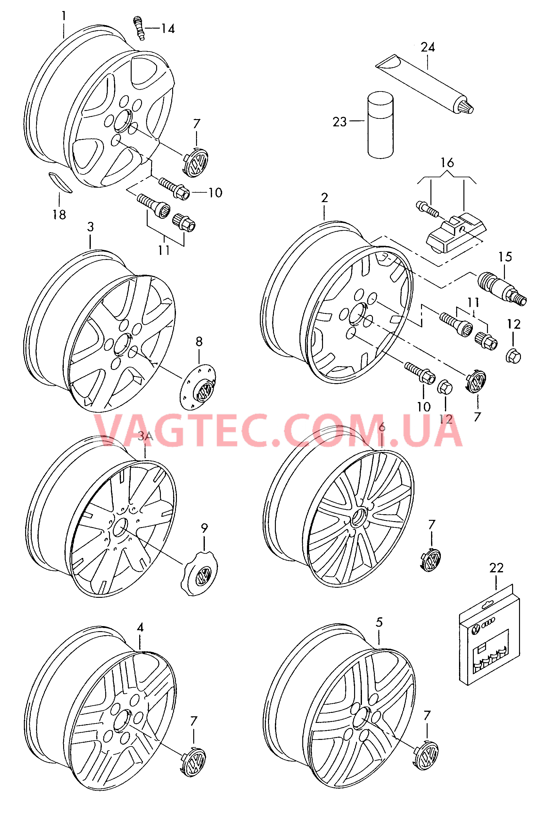 | 11 | 7L0601137055 | Колёсный болт, секретка,с переходником Запрограммированный ключ | 11.06 - 05.10; больше не поставляется | ||
