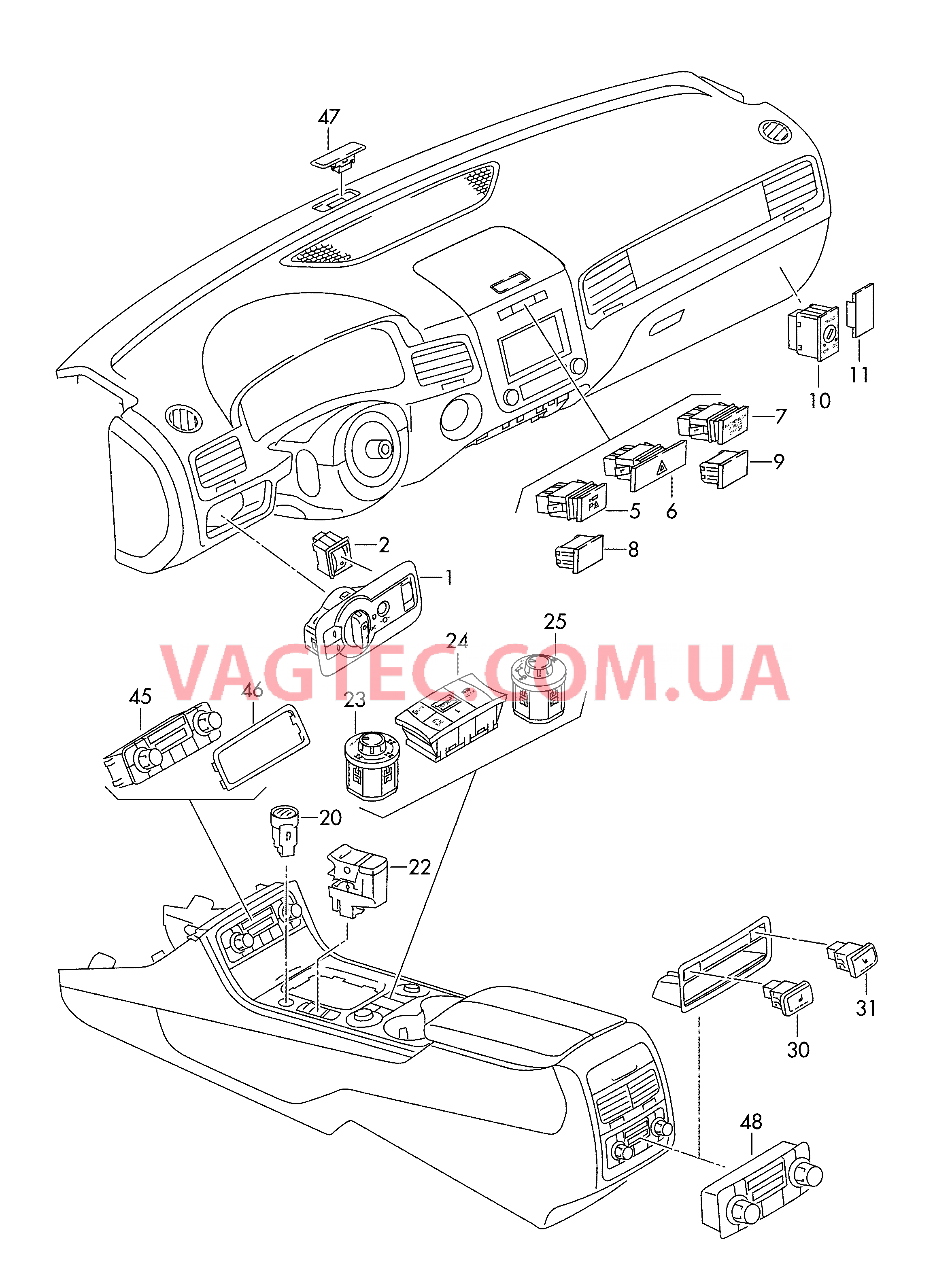 | 45 | 7P6907040BT | Панель управления и индикацииБУ климатической установкис электронным управлением для а/м с автономным отопите-лем и подогревом сидений D - 28.05.2013>> | 1 | ||