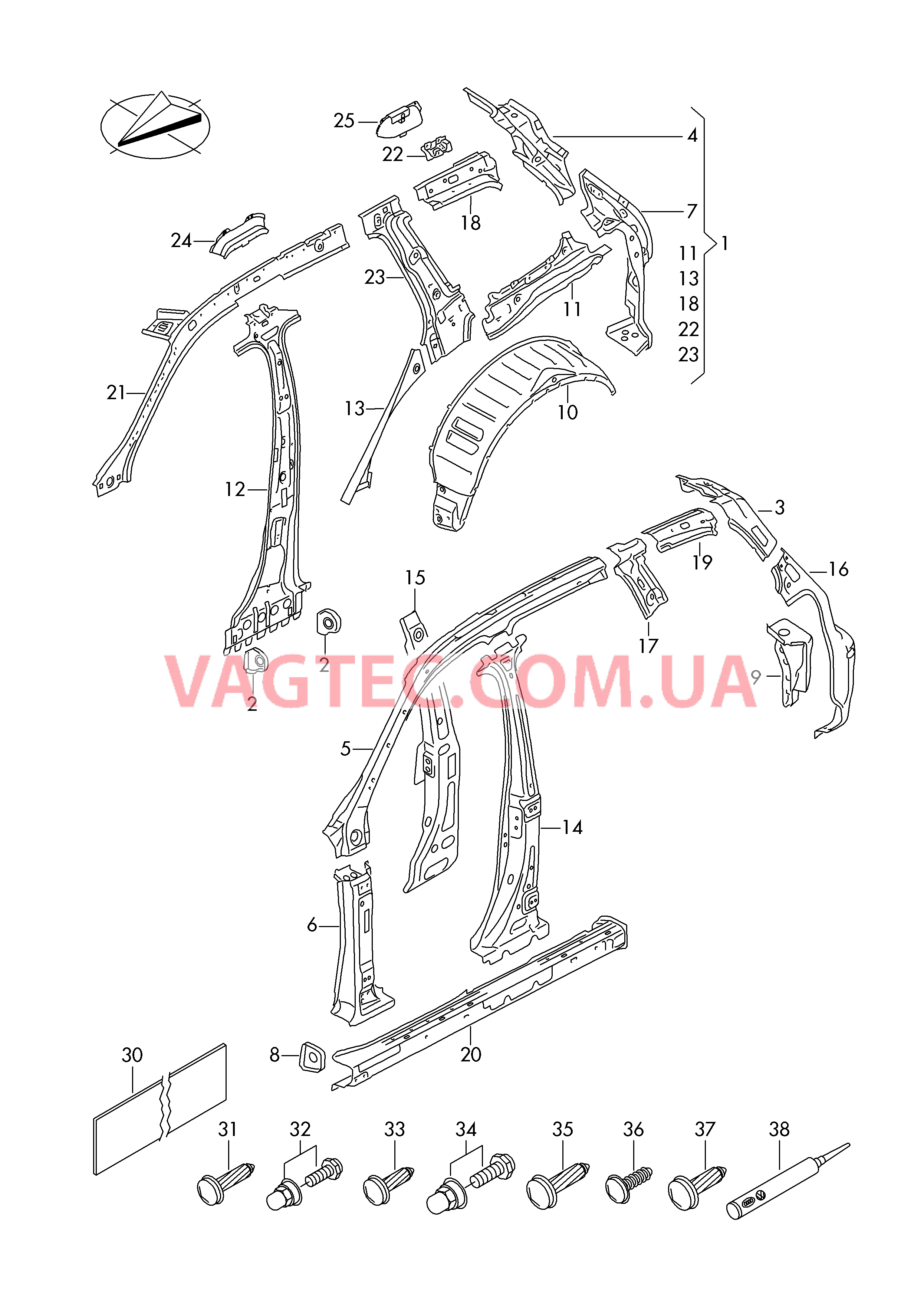 | 2 | 7P0809019 | Пластина для стойки В | нижн. слева и справа | 2 | |