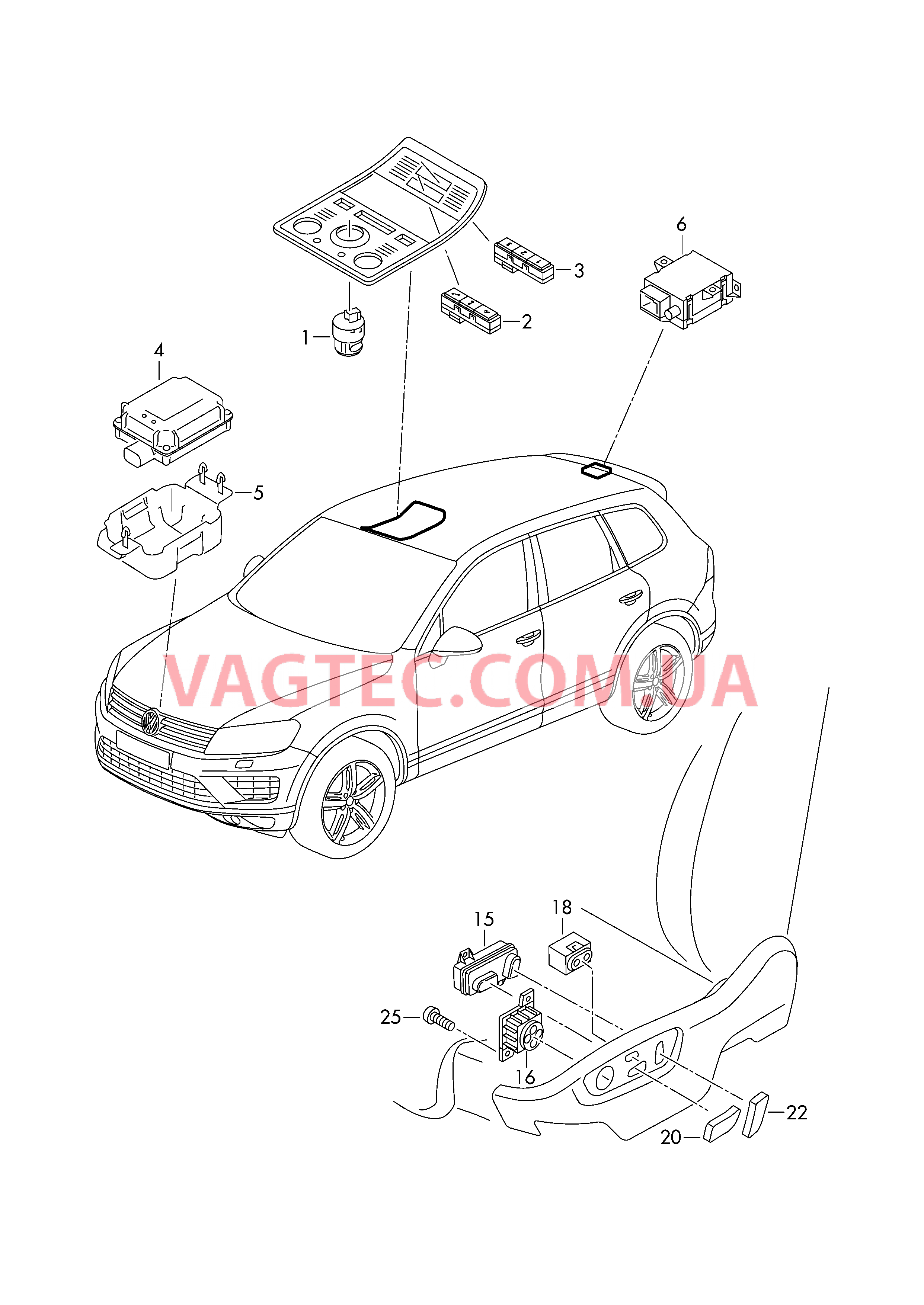 | 16 | 7P6959777QWA | Выключатель для регулировкипоясничного подпора чёрный satinschwarz/чёрный | ПPPЛ 6-штекерн. 06.14 - ... | ||